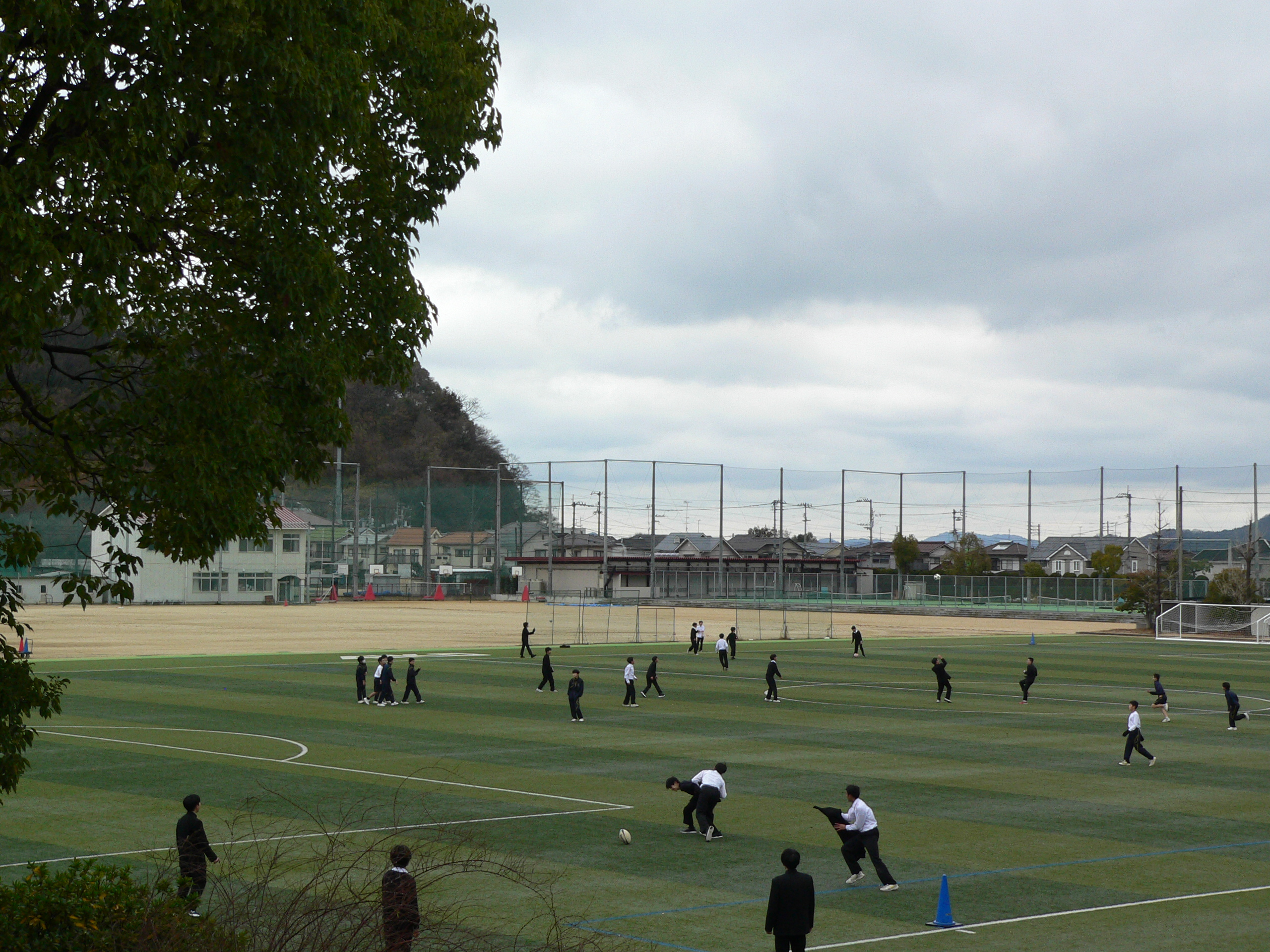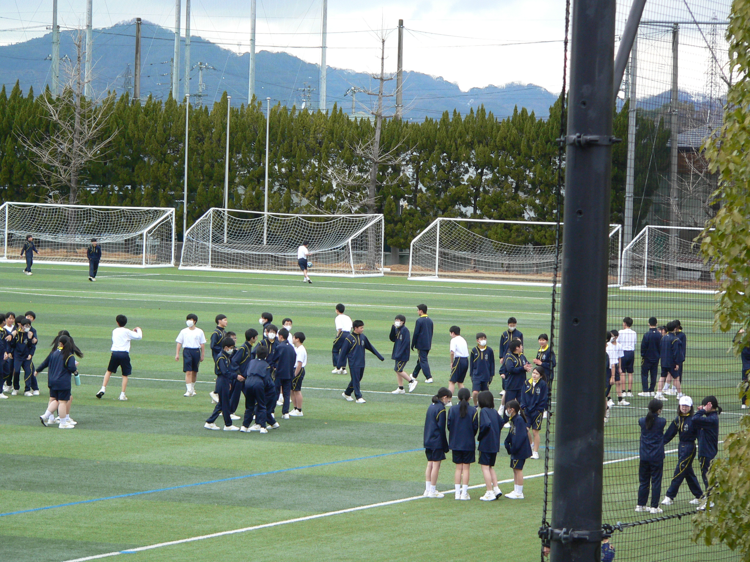 昼食を終えて、雨上がりの人工芝グラウンドで