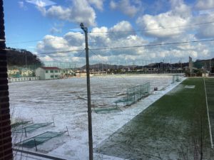 本日は、グラウンドに薄っすら雪が積もっていました。