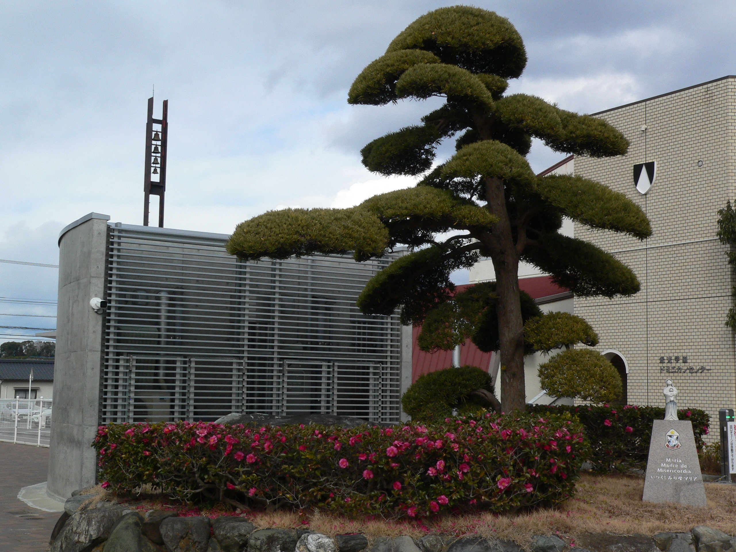 見事に手入れされたマキの木です。右隅には
