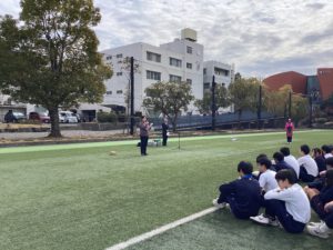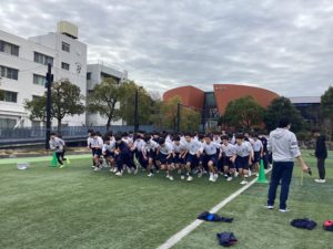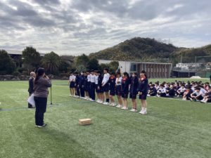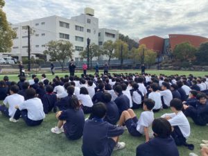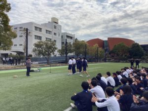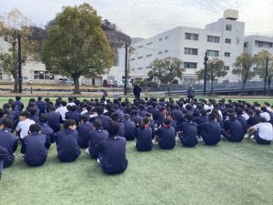 2月15日土曜日のマラソン大会、70期、中3生は中1・中2生が走り終え11時過ぎに始まりました。
