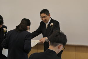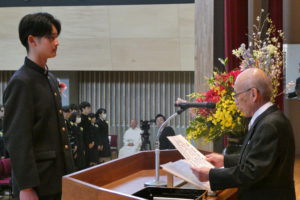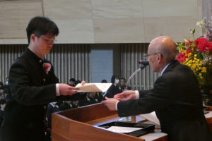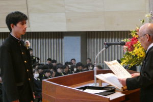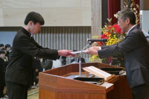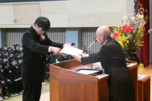 代表者による卒業証書授与、記念品贈呈、田中忠夫奨励賞、皆勤賞、体育功労賞、文化功労賞の表彰です。