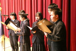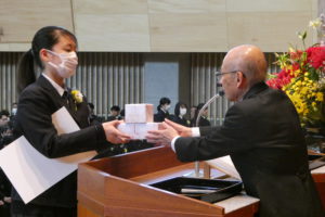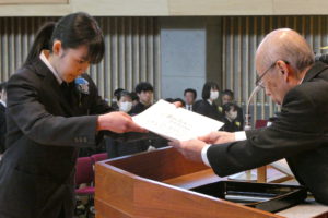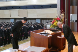 学校長、理事長、父母の会会長、同窓会会長からそれぞれ卒業生にメッセージが送られました。