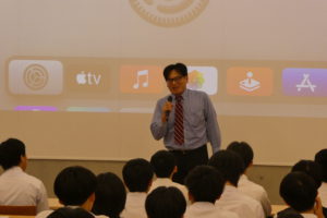 続いて添乗員さん、カメラマンさんの紹介のあと、最後に学年部長の金内先生からお話がありました。