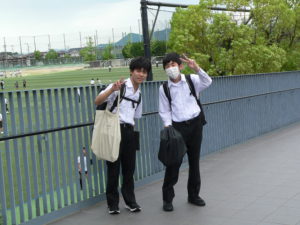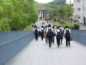 放課後、ブリッジを渡って帰宅する生徒たちです。