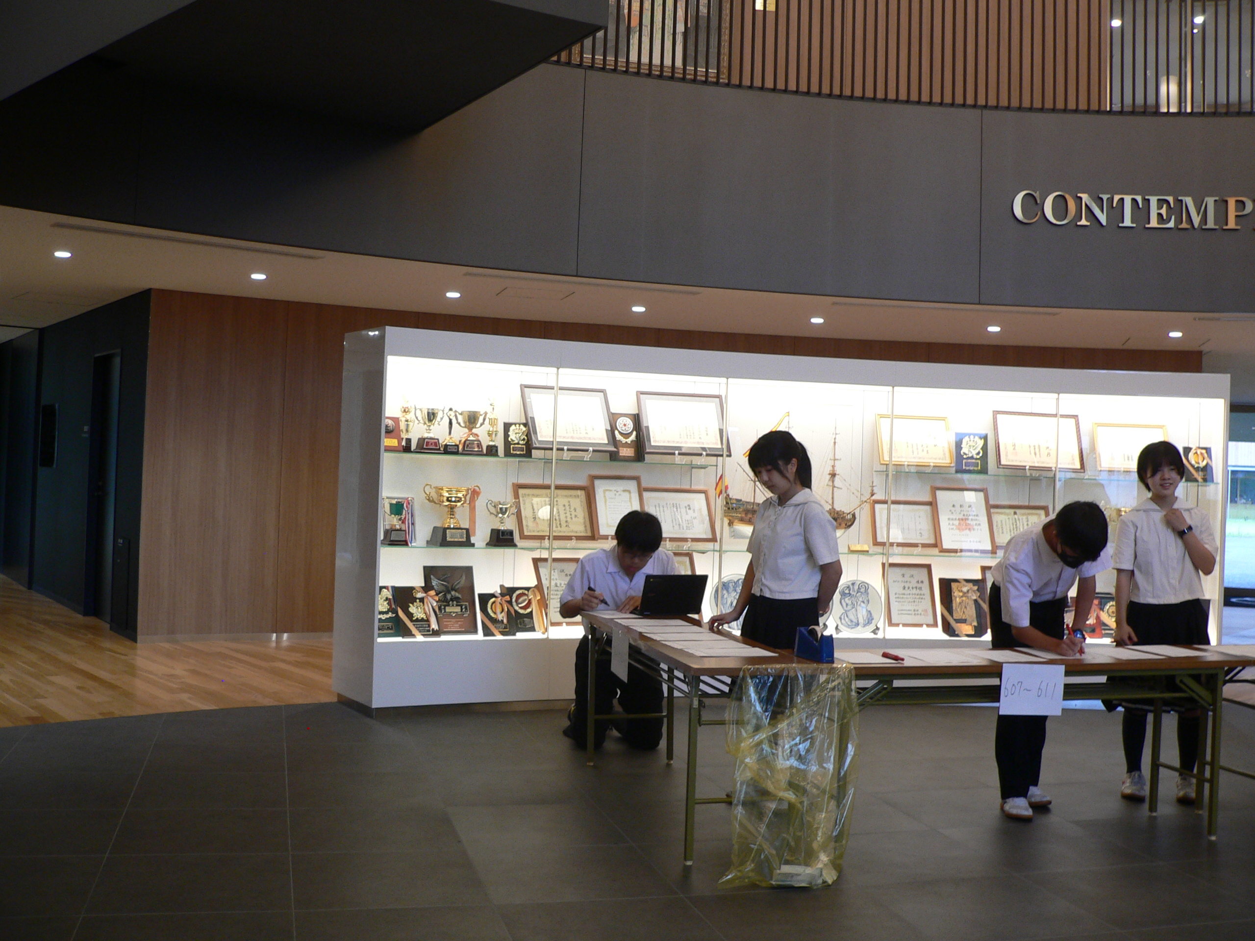 始業前に本部棟で文化祭の仕事をする文化祭実行委員の
