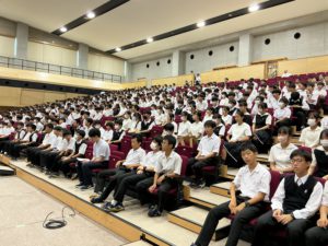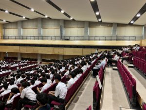 朝は、体育館や文化会館に集合し、全体連絡がありました。