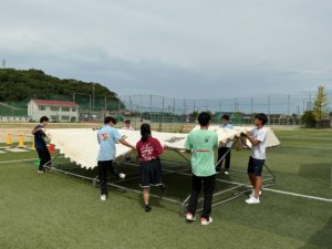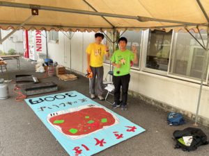 体育館前でも、案内図を作成中です。