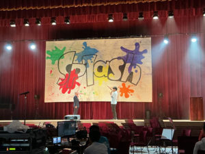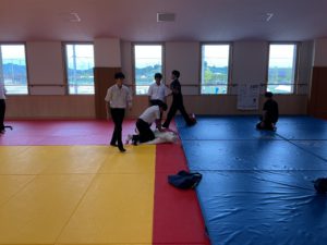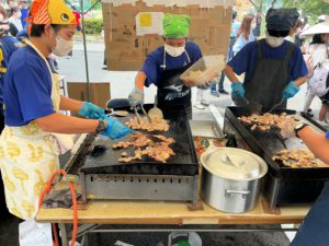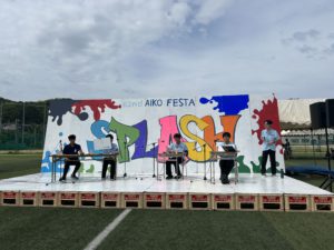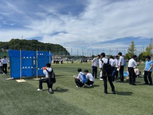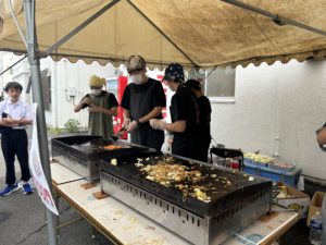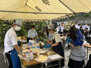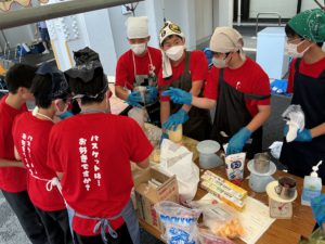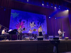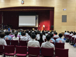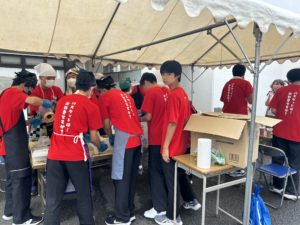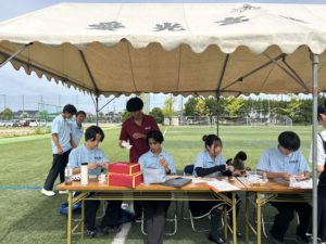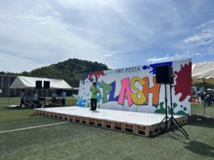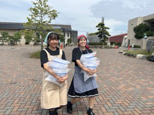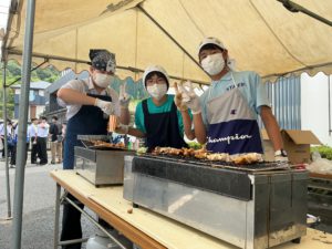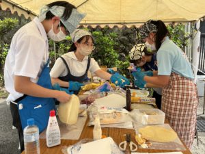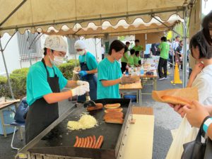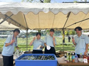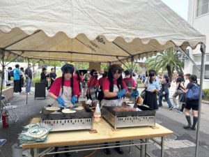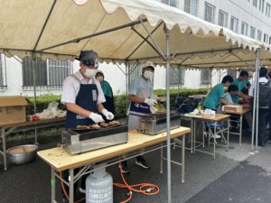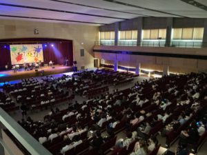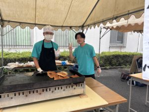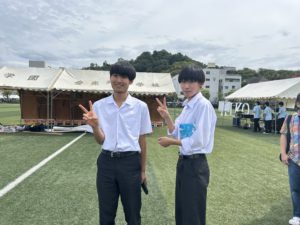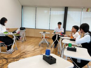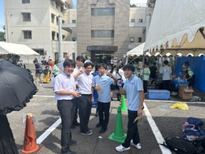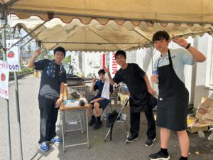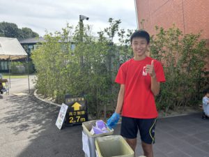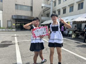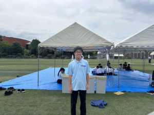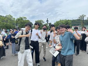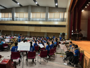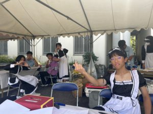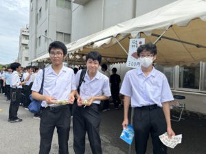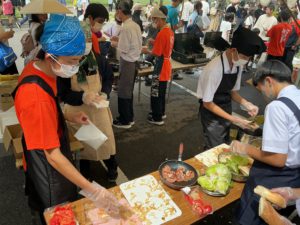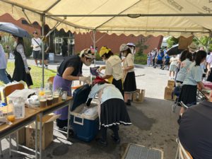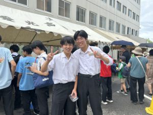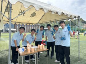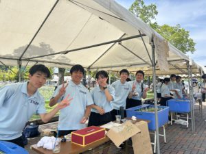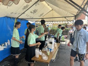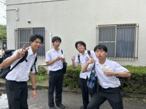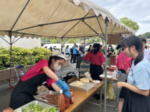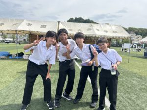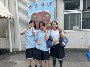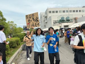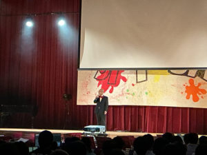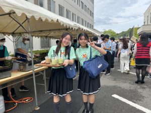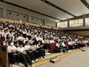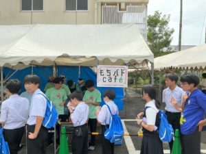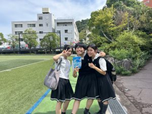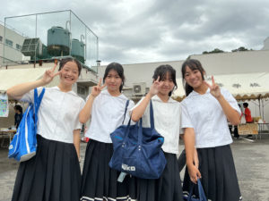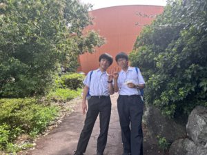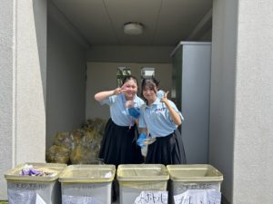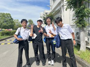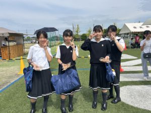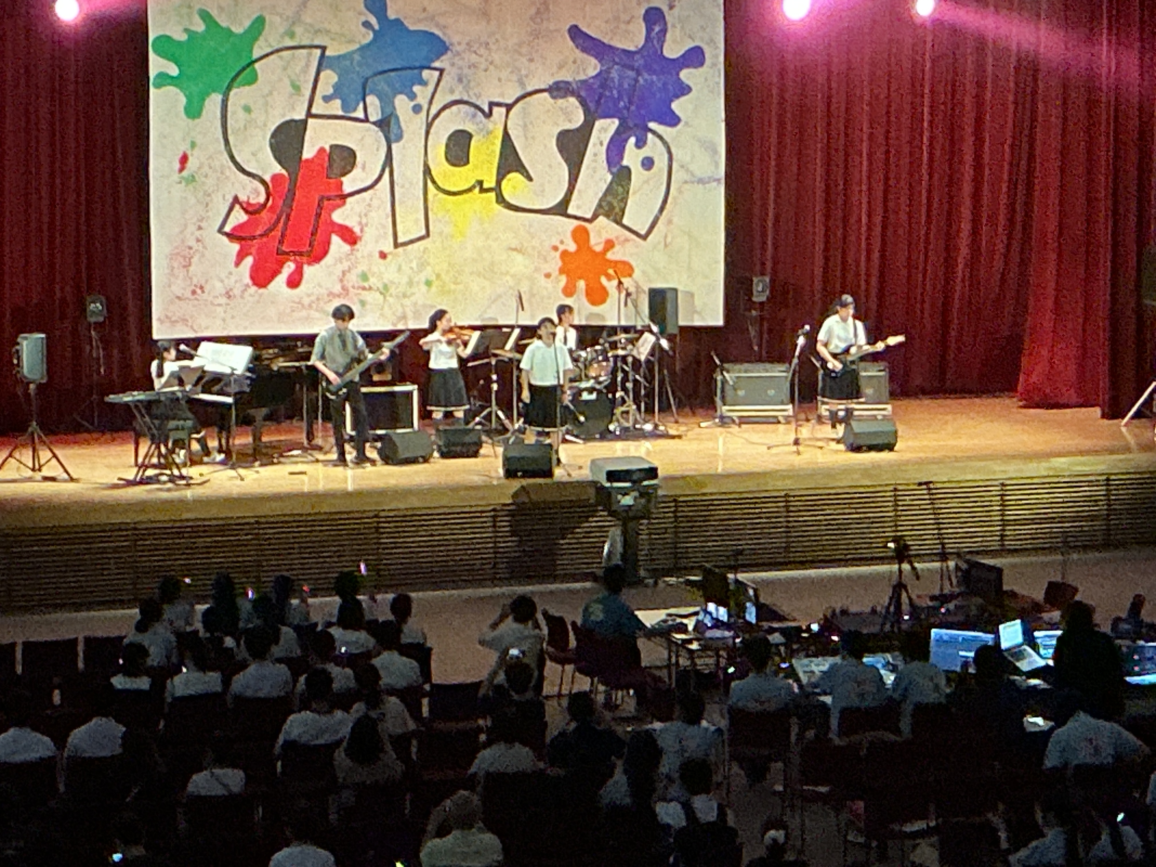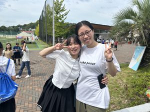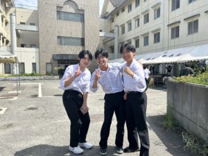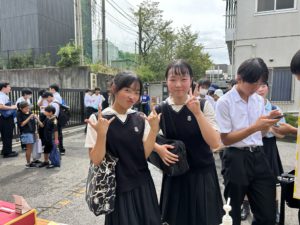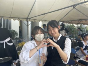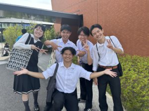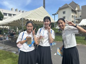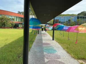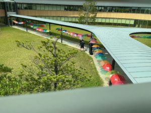 中学部中庭は毎年恒例の傘の装飾でとても素敵です。