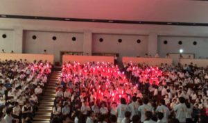 文化祭実行委員会から、実行委員長や局長への感謝の気持ちを伝えるペンライトでハートが描かれました。