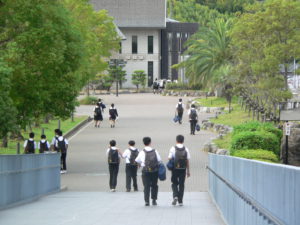 授業が終わって帰宅する生徒です。