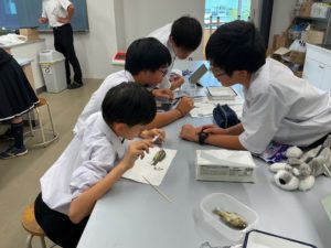 10/2(木) 中1生物の授業でブルーギルの解剖を行いました。
