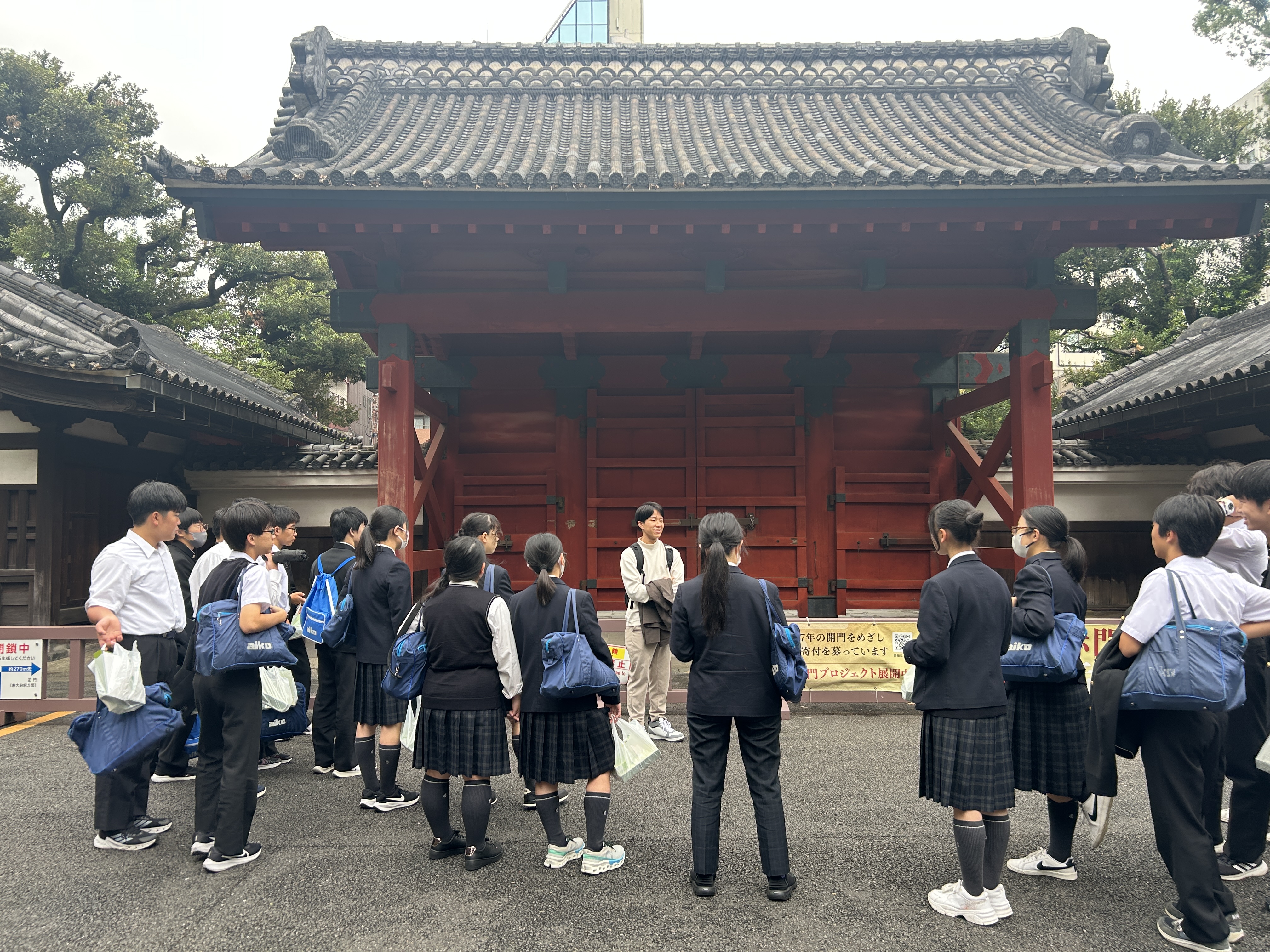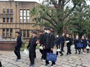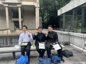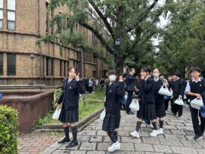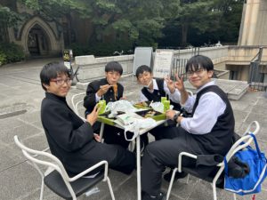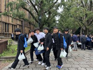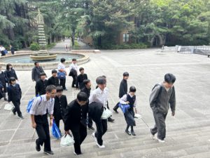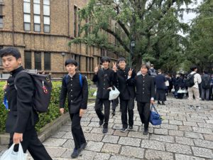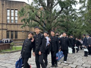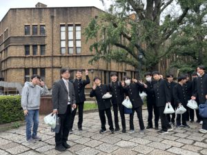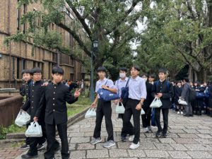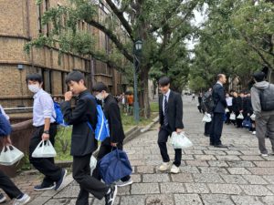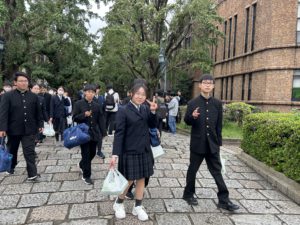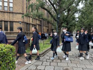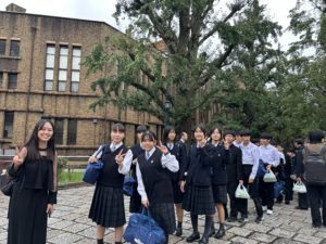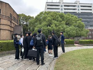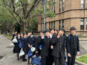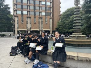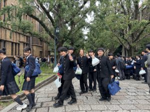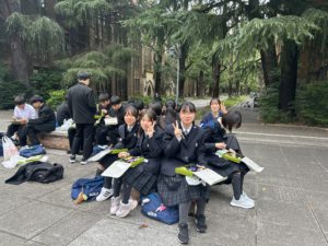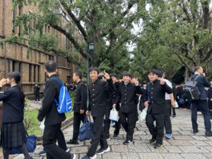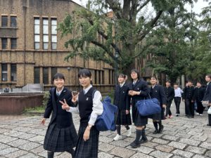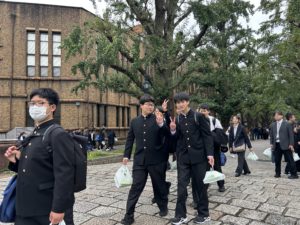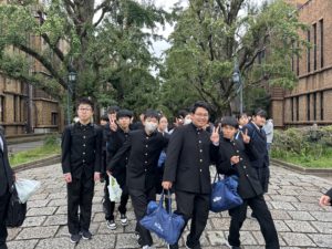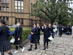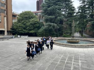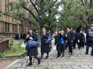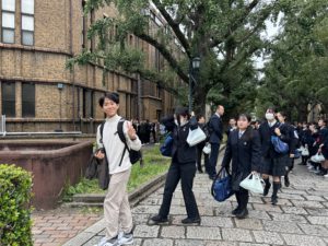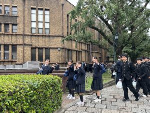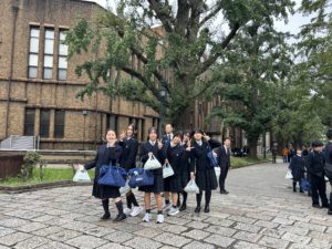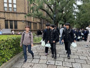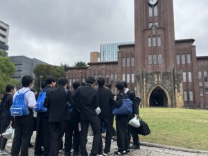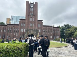先輩の誘導で東京大学を見学します。