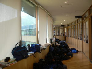 廊下には、試験に関係のない学習道具が