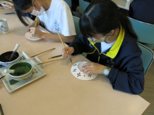 各自が素焼きの皿に絵付けをしていきます。皿は施設で焼いていただいて、後日生徒の元に返されます。