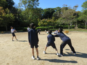 天気も良く、外でも体育館の中でも、自由に体を動かしていました。