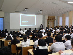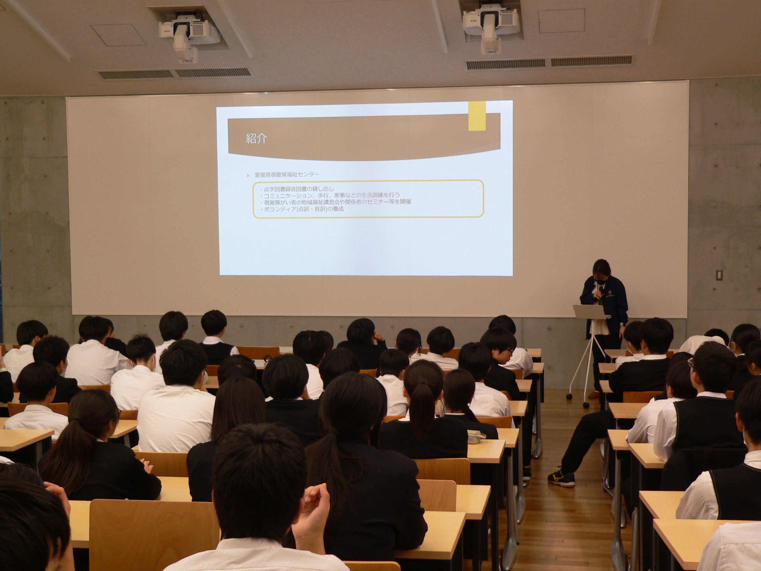 演題は「視覚障がいの理解、ユニバーサルデザイン等」