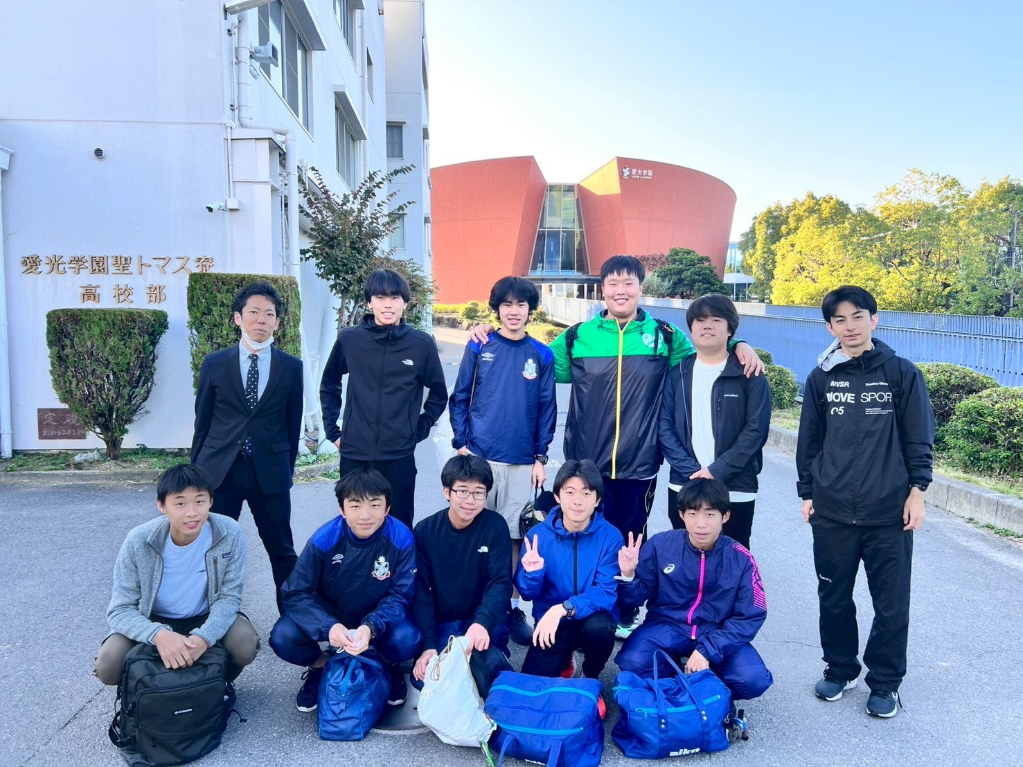 サッカー部、ラグビー部、バスケ部の合同チームです。