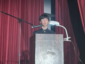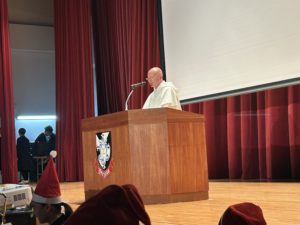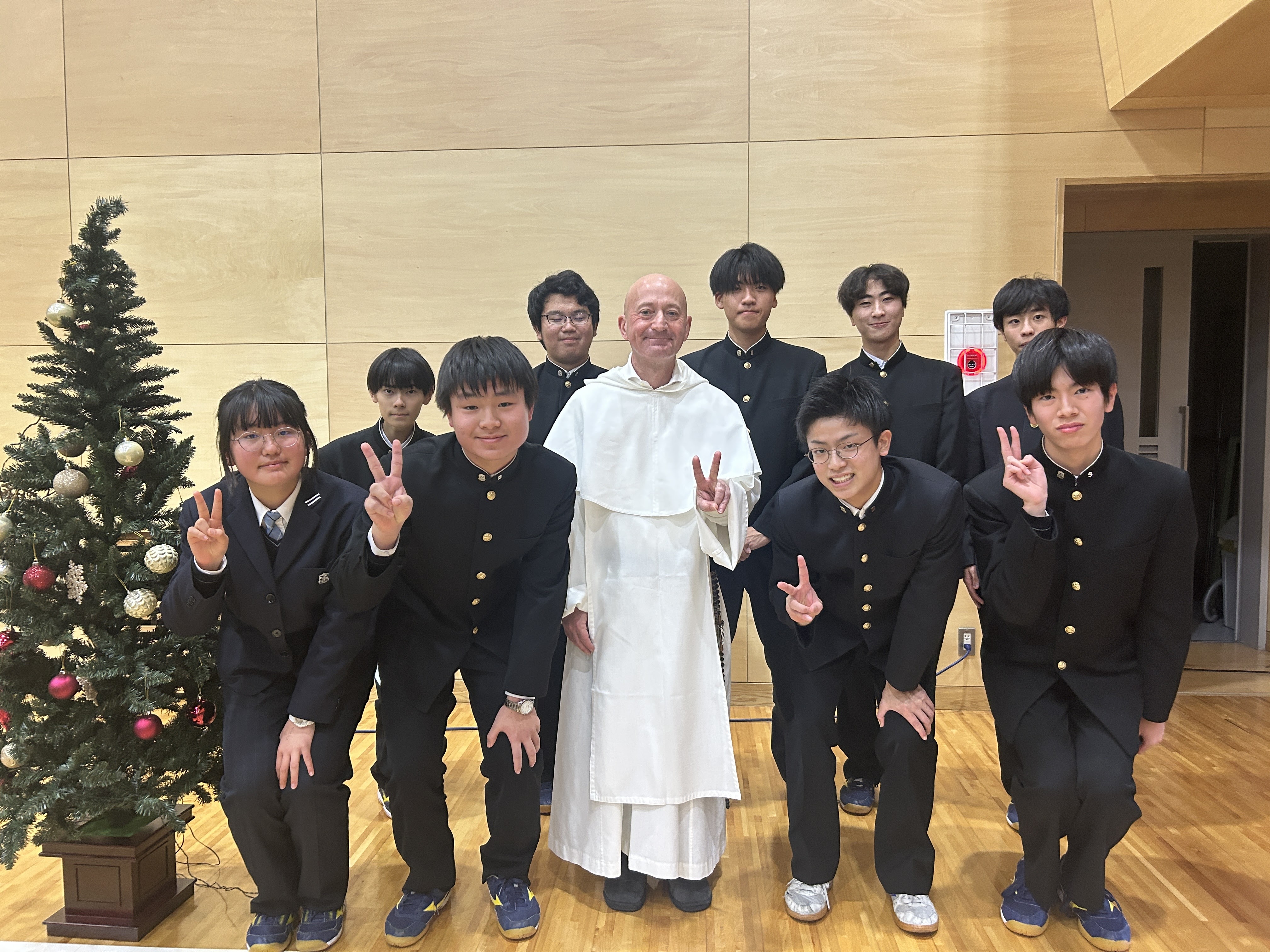 共同祈願の生徒とホアン神父様とで記念撮影