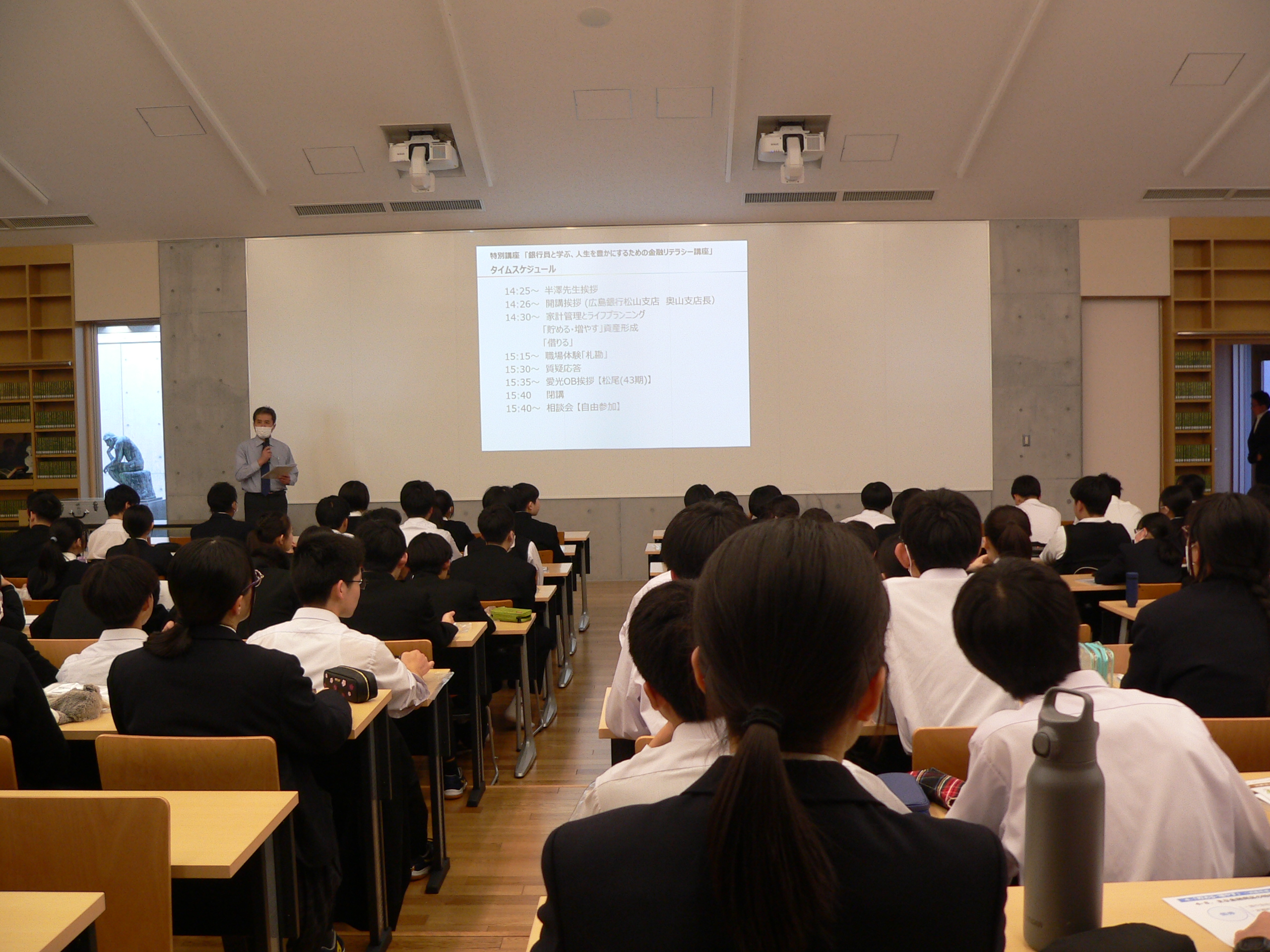 金融リテラシー講座」で、広島銀行松山支店の行員の