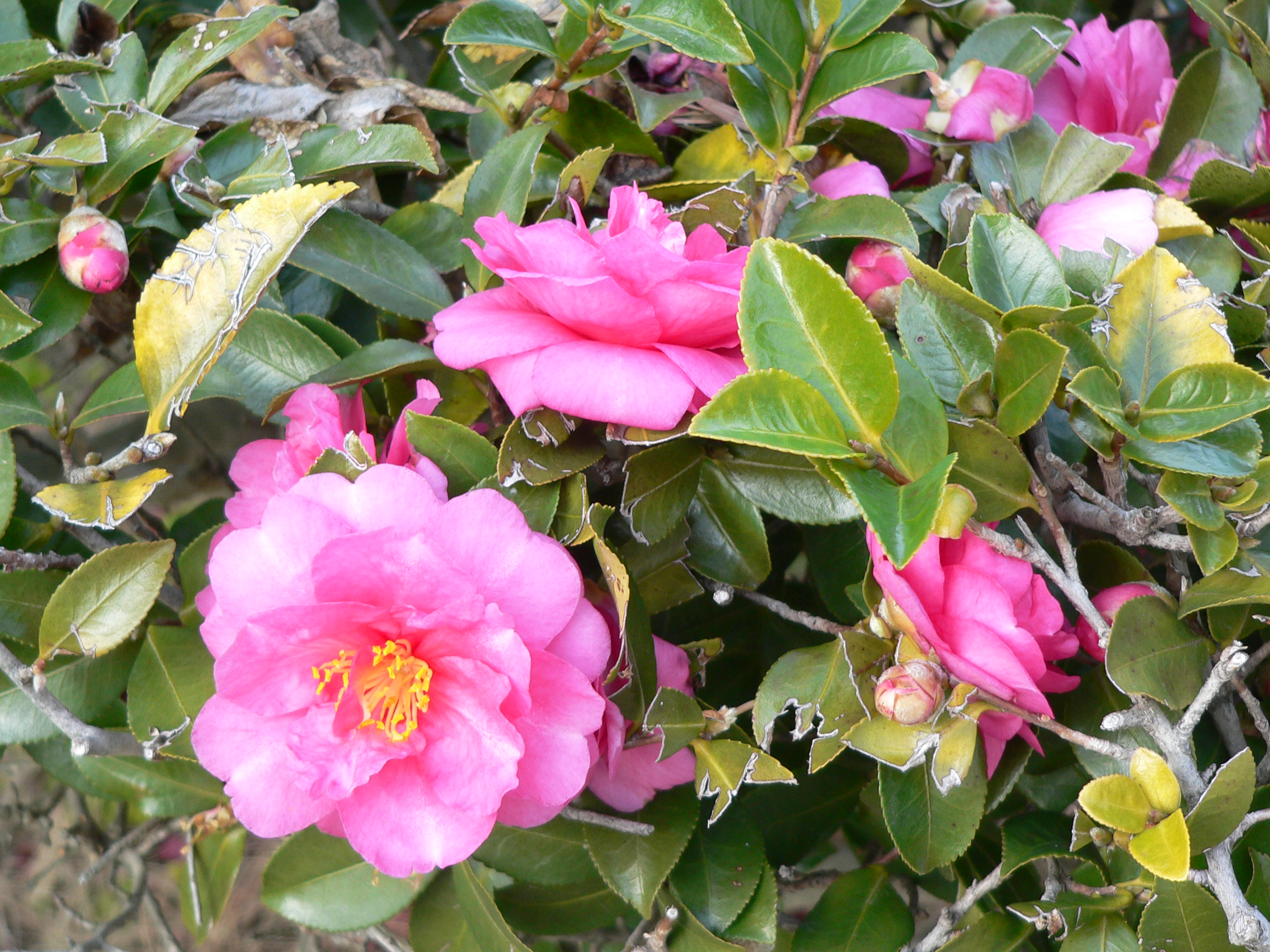 校庭にはツバキの花が咲いています。