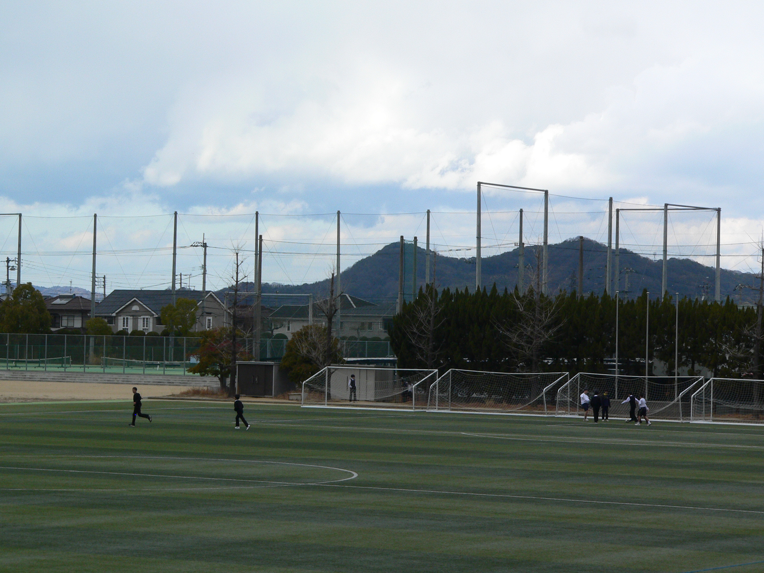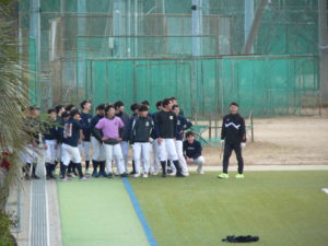 放課後、寒風吹く中で部活動に励む部員です。