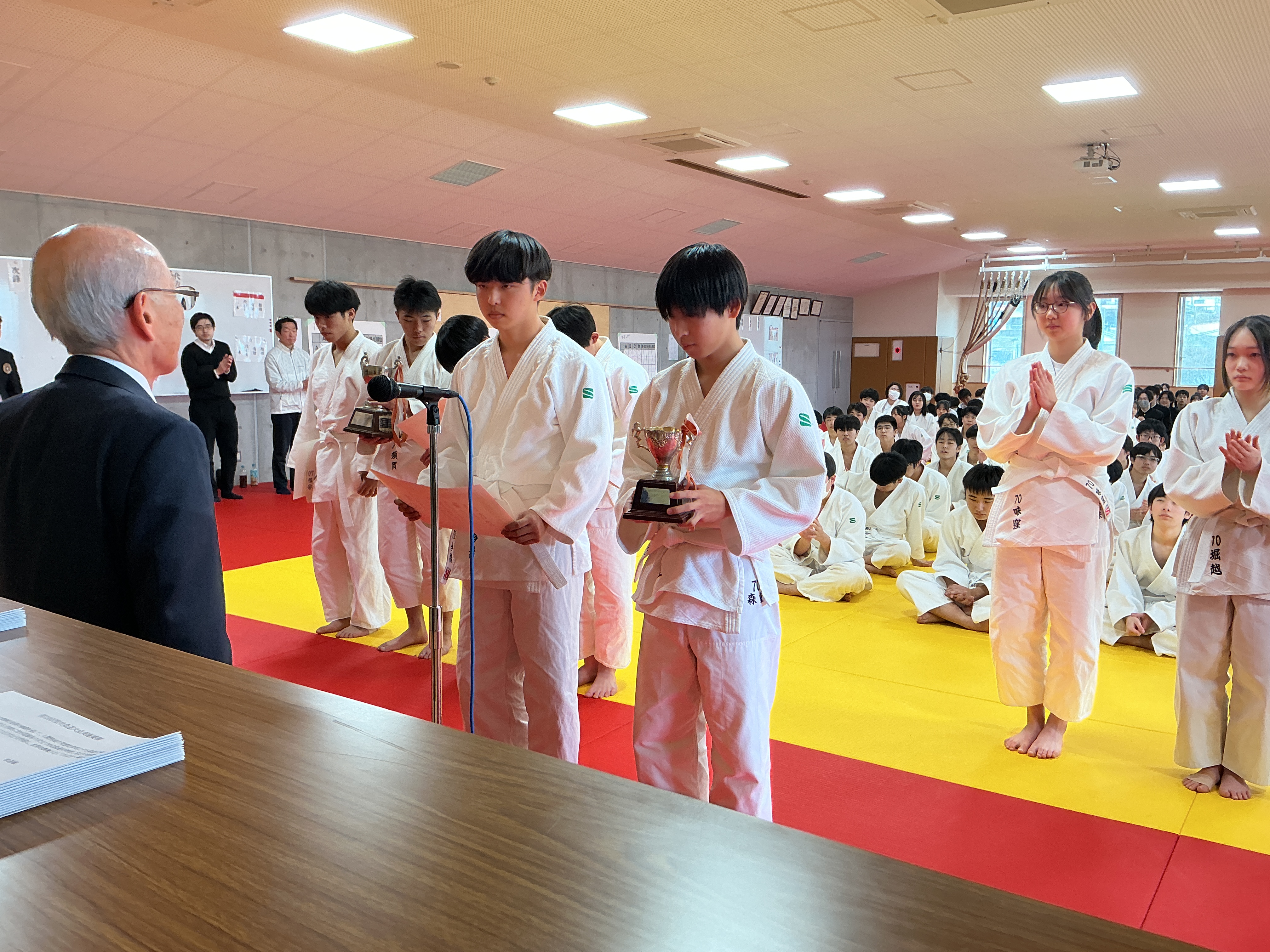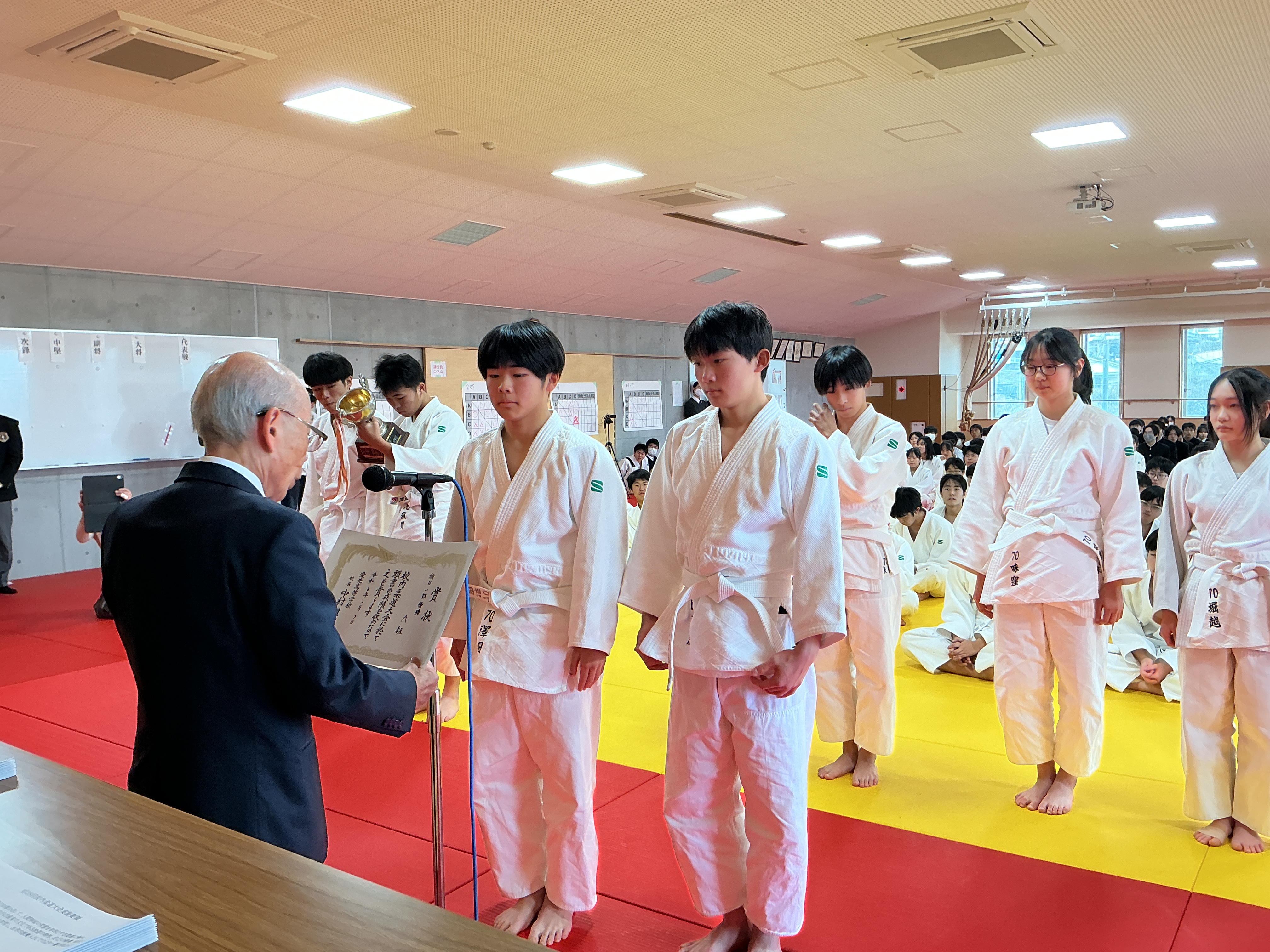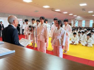 先週土曜日に行われた、校内柔道大会の閉会式の様子と結果をお知らせいたします。