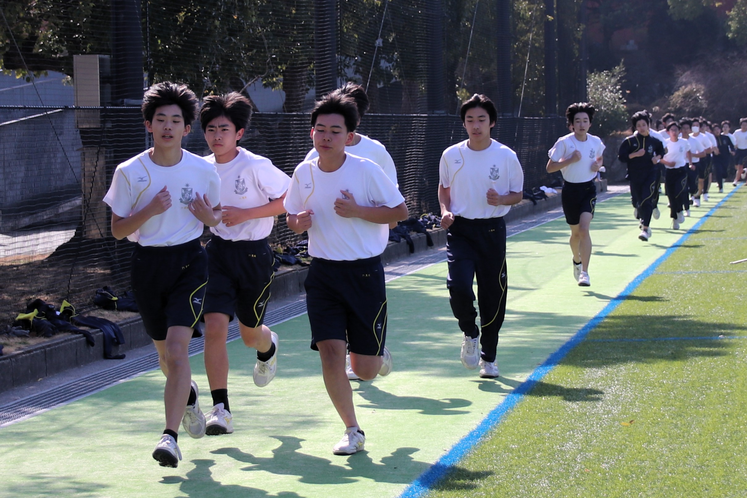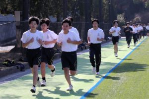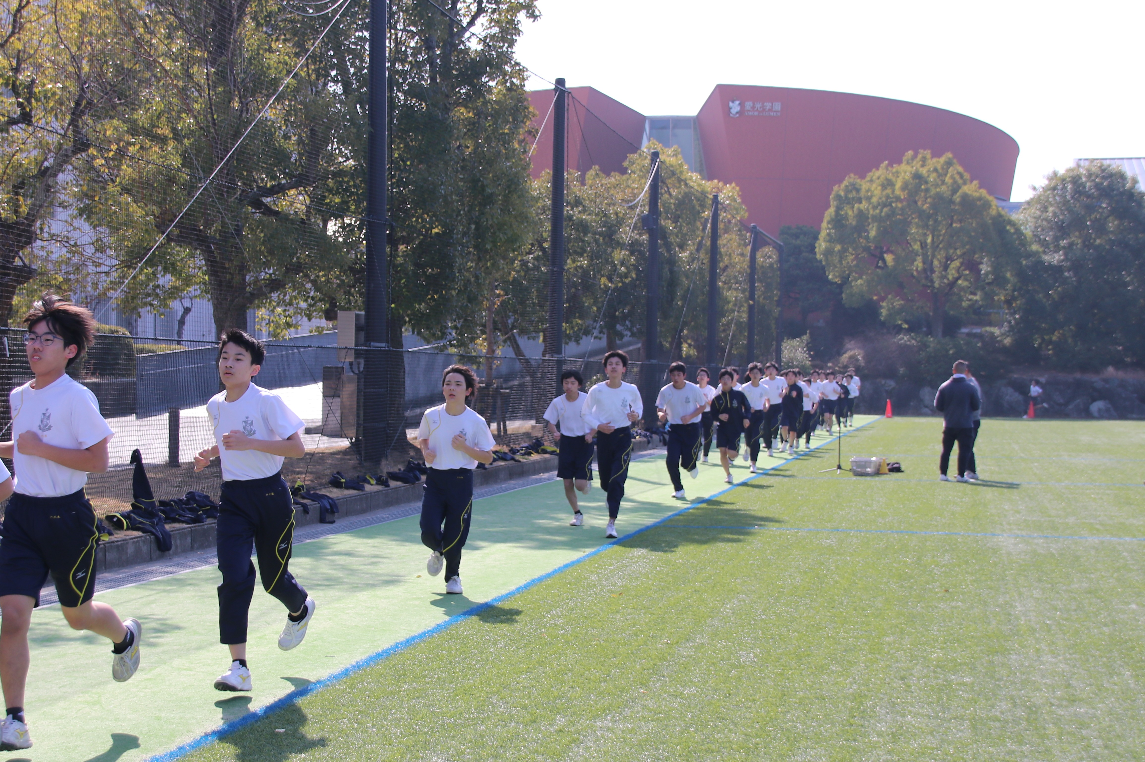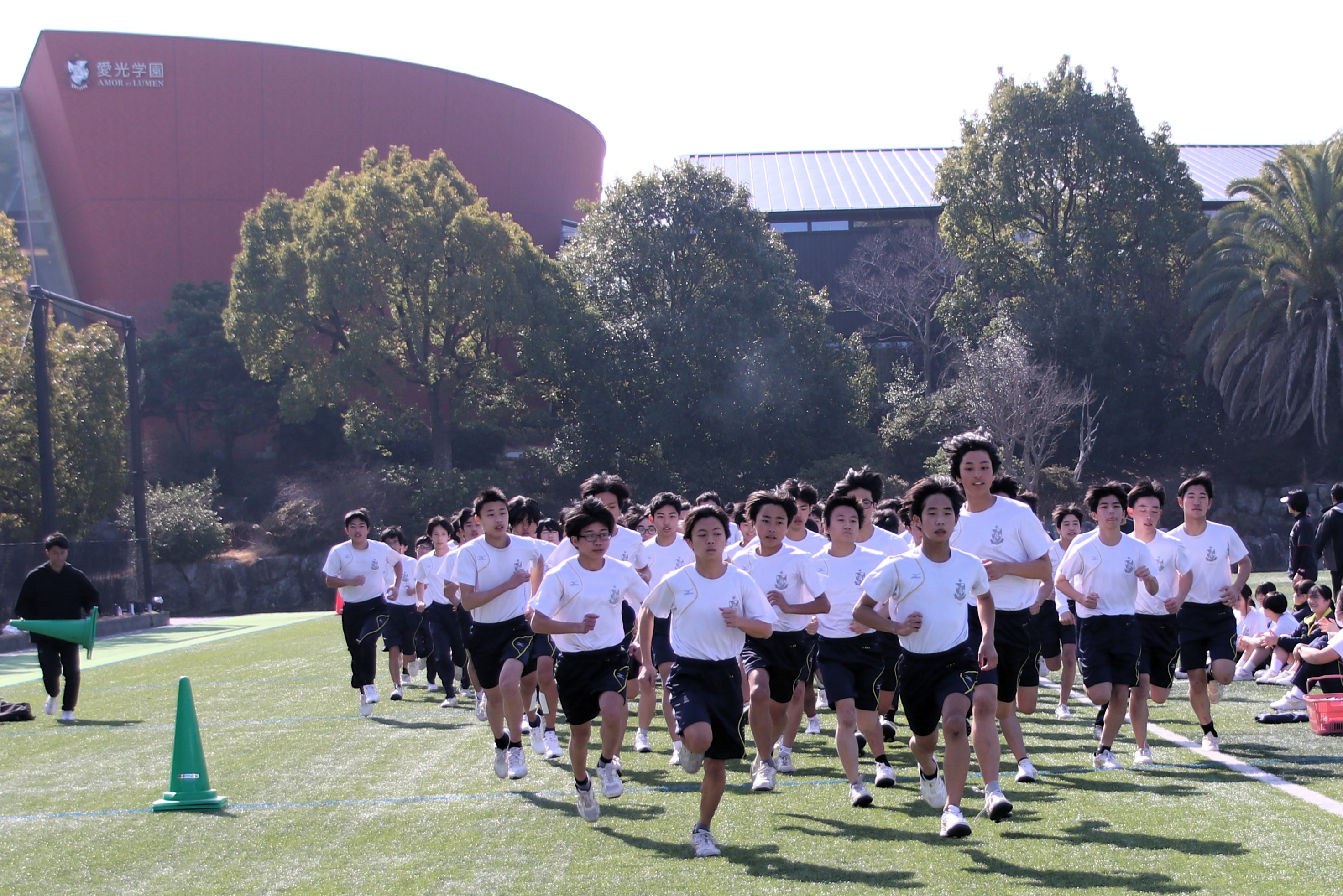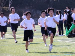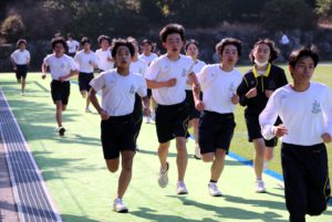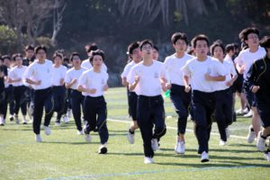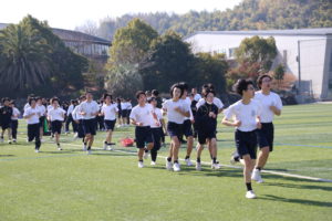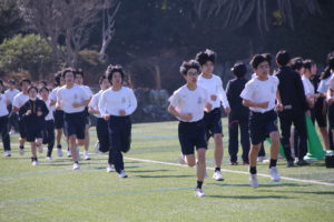 三寒四温という言葉があります。寒い日が三日ほど日続いた後に暖かい日が四日ほど続き、それが繰り返される気象現象のことをいいます。本来は冬の季語ですが、そこには寒暖を繰り返しながら春に近づいていくというという意味も含まれているように思います。そんな春の訪れを予感させる快晴の日に、71期生にとっての中学部最後のマラソン大会が行われました。生徒は冬に育つ。苦しくてもあきらめず、それぞれのペースで自分のゴールを目指してがんばる姿には、この三年間の成長が感じられ、また、その横顔は頼もしくもありました。(中3学年部長の一色大輔先生も一緒に走っています。)