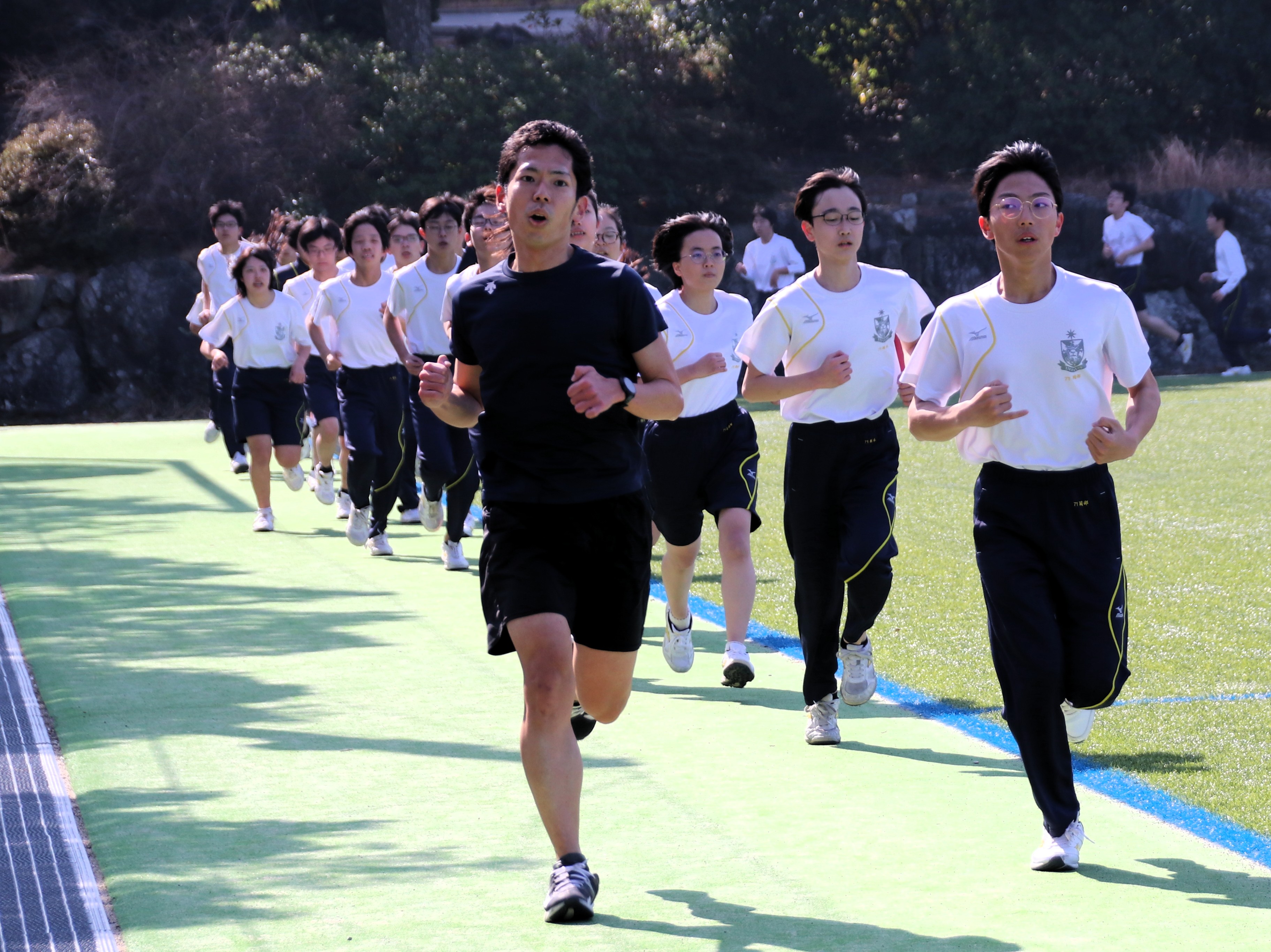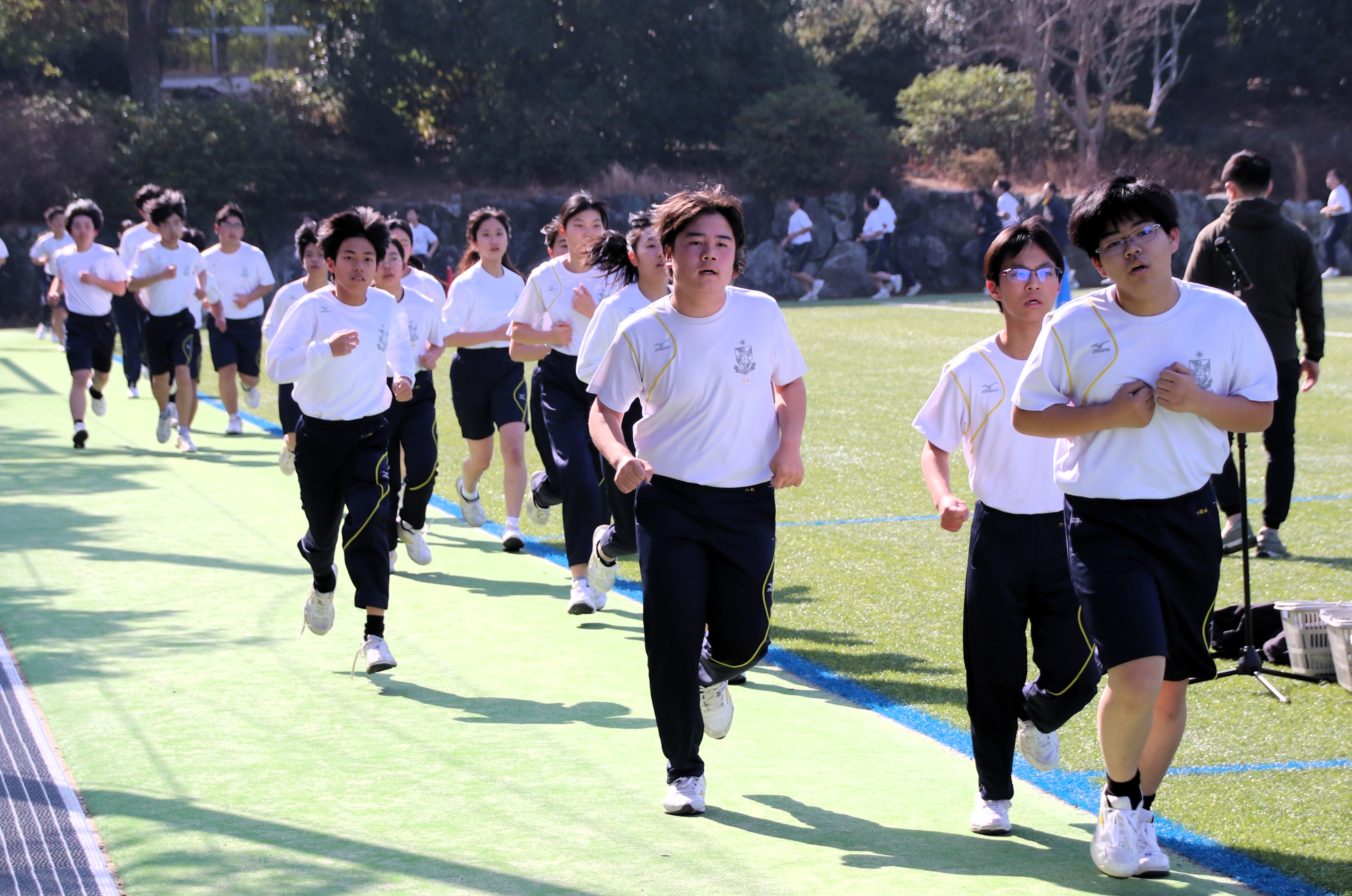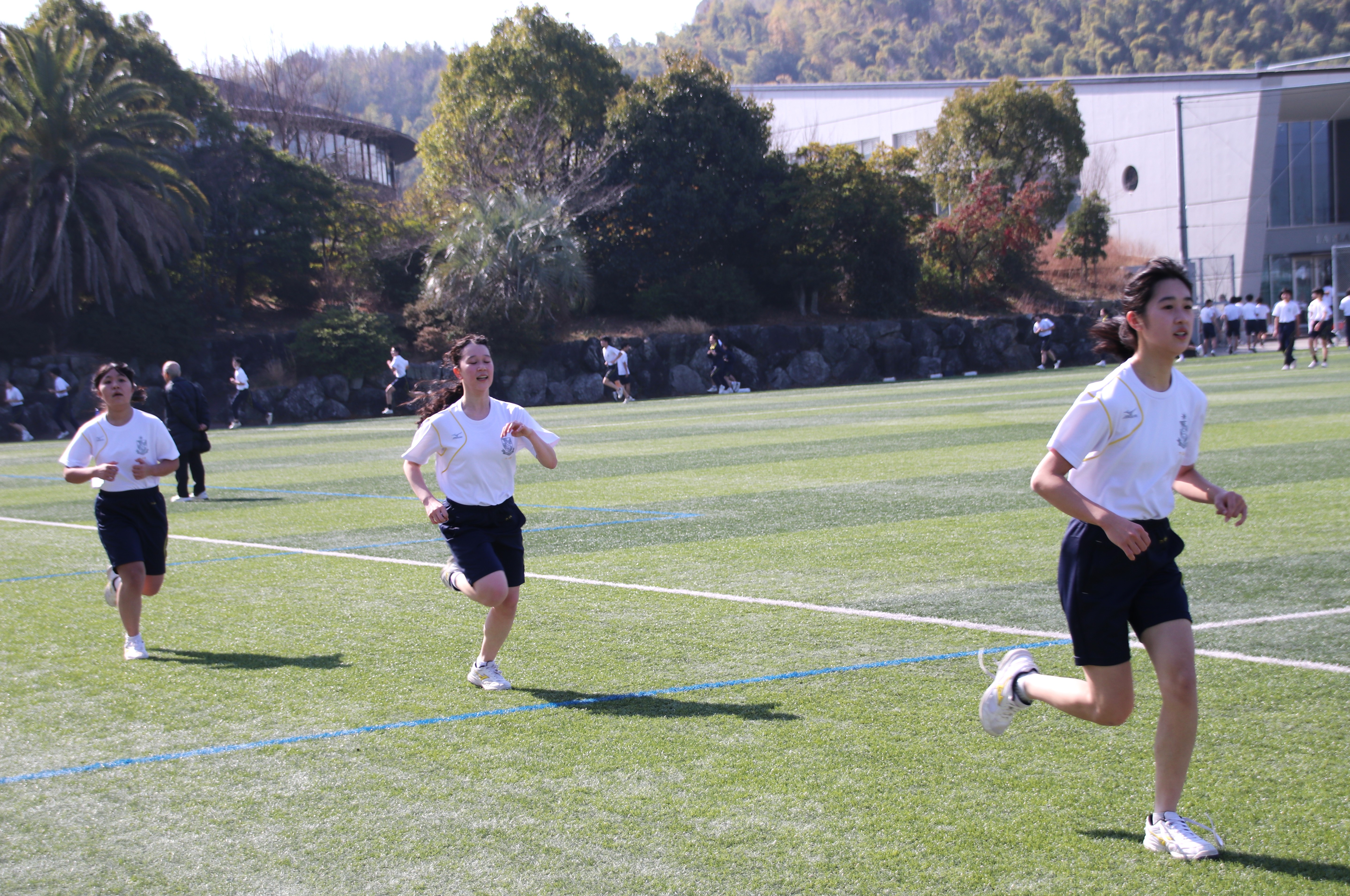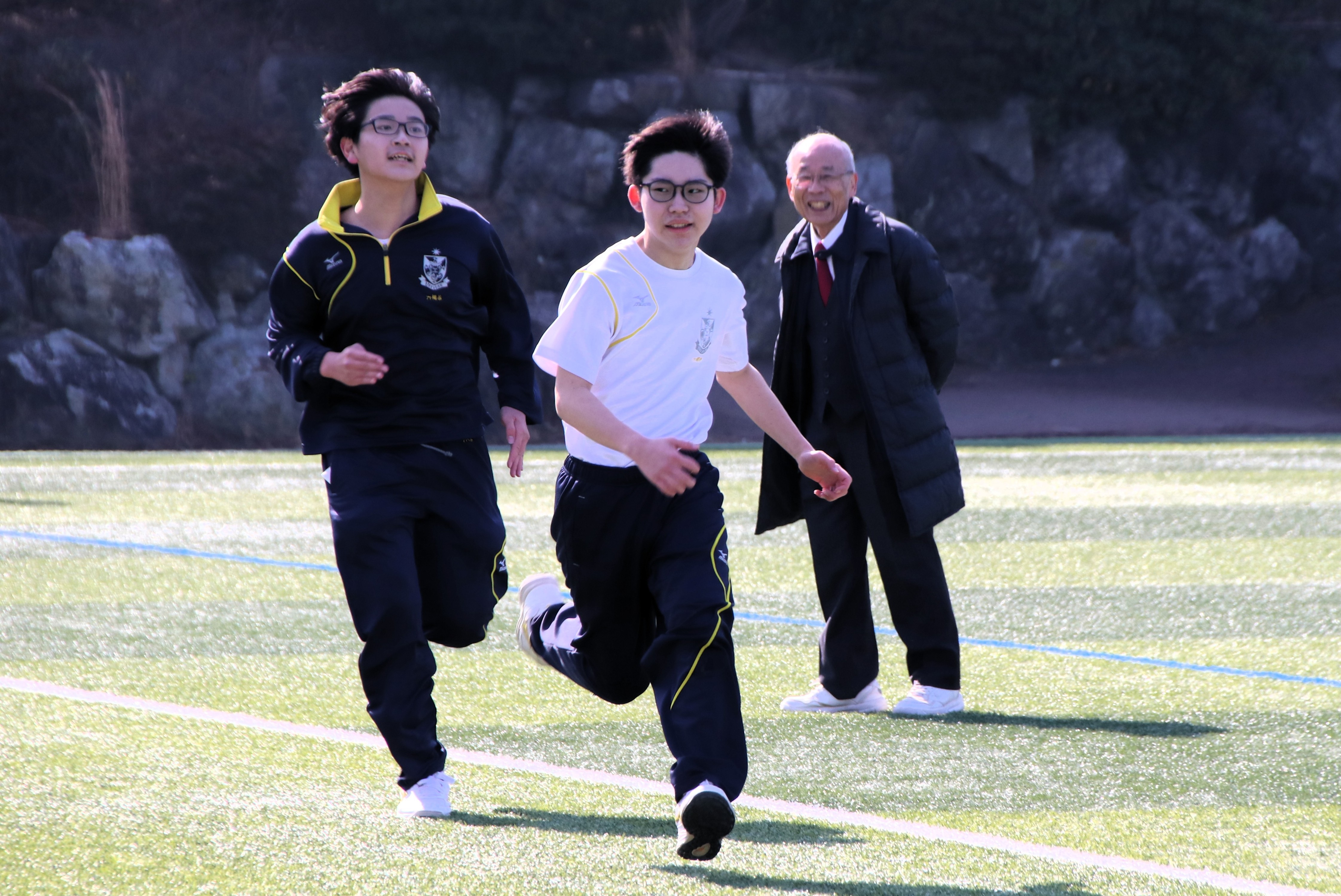 三寒四温という言葉があります。寒い日が三日ほど日続いた後に暖かい日が四日ほど続き、それが繰り返される気象現象のことをいいます。本来は冬の季語ですが、そこには寒暖を繰り返しながら春に近づいていくというという意味も含まれているように思います。そんな春の訪れを予感させる快晴の日に、71期生にとっての中学部最後のマラソン大会が行われました。生徒は冬に育つ。苦しくてもあきらめず、それぞれのペースで自分のゴールを目指してがんばる姿には、この三年間の成長が感じられ、また、その横顔は頼もしくもありました。(中3学年部長の一色大輔先生も一緒に走っています。)