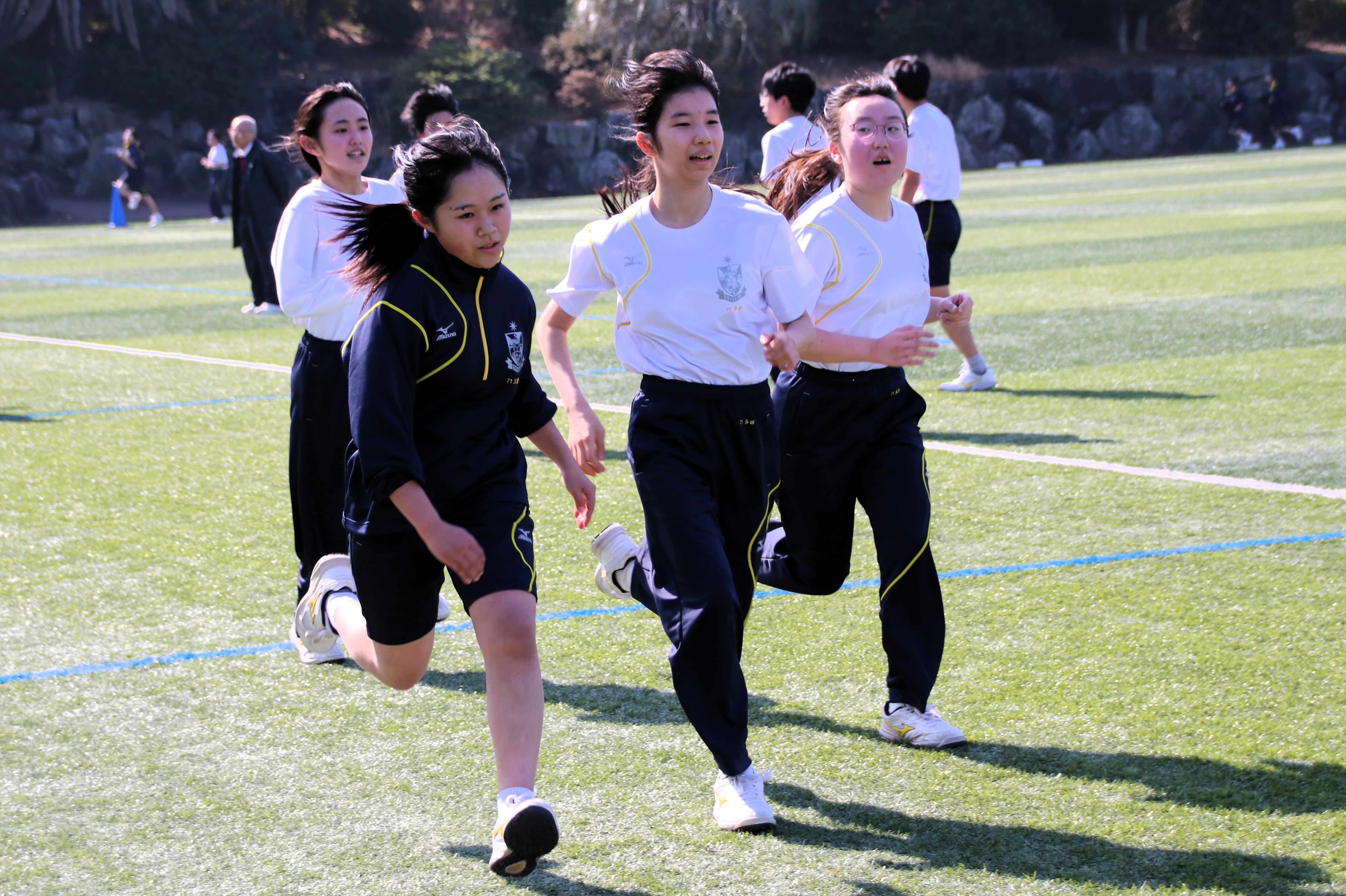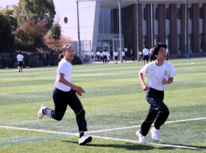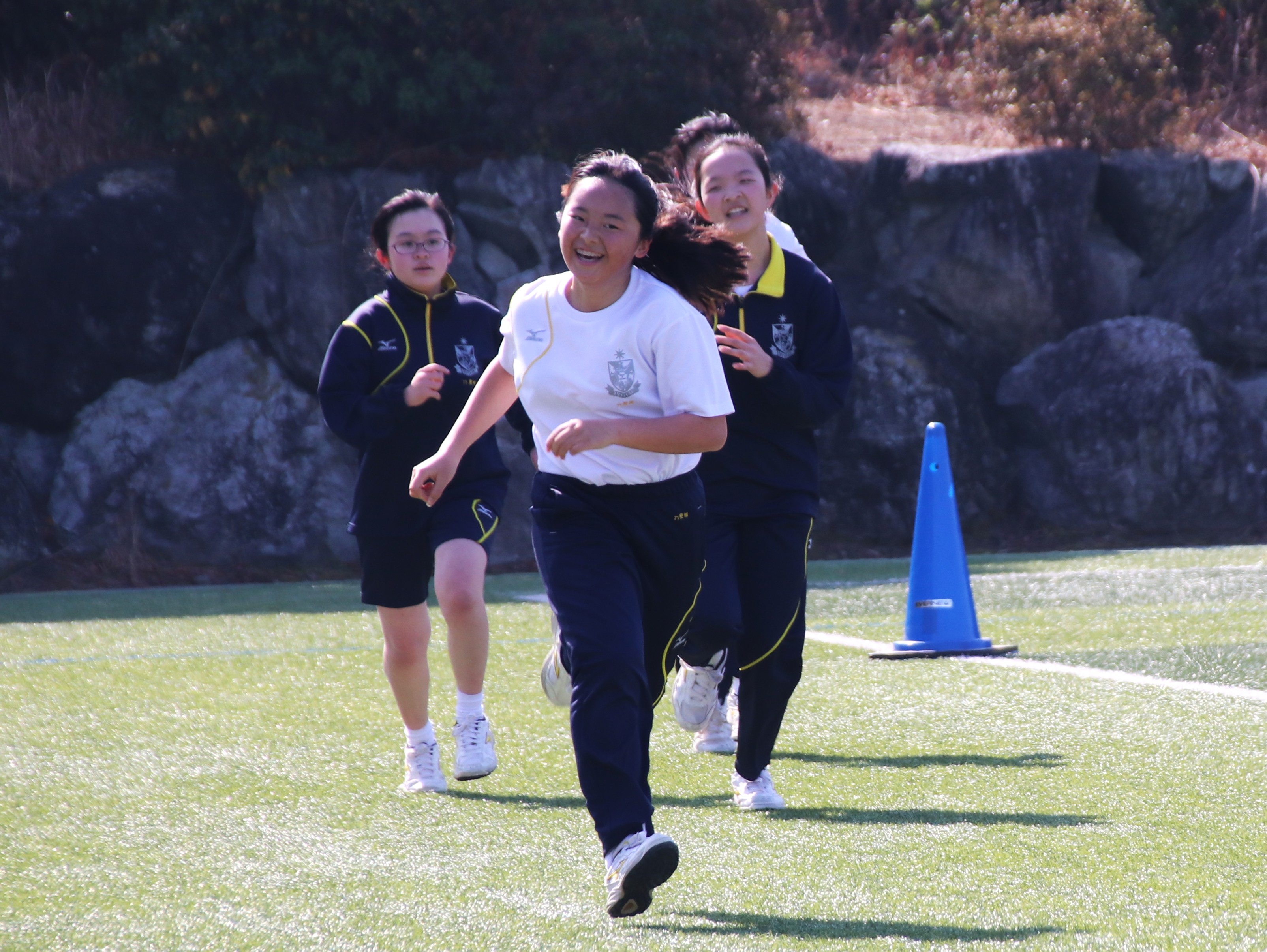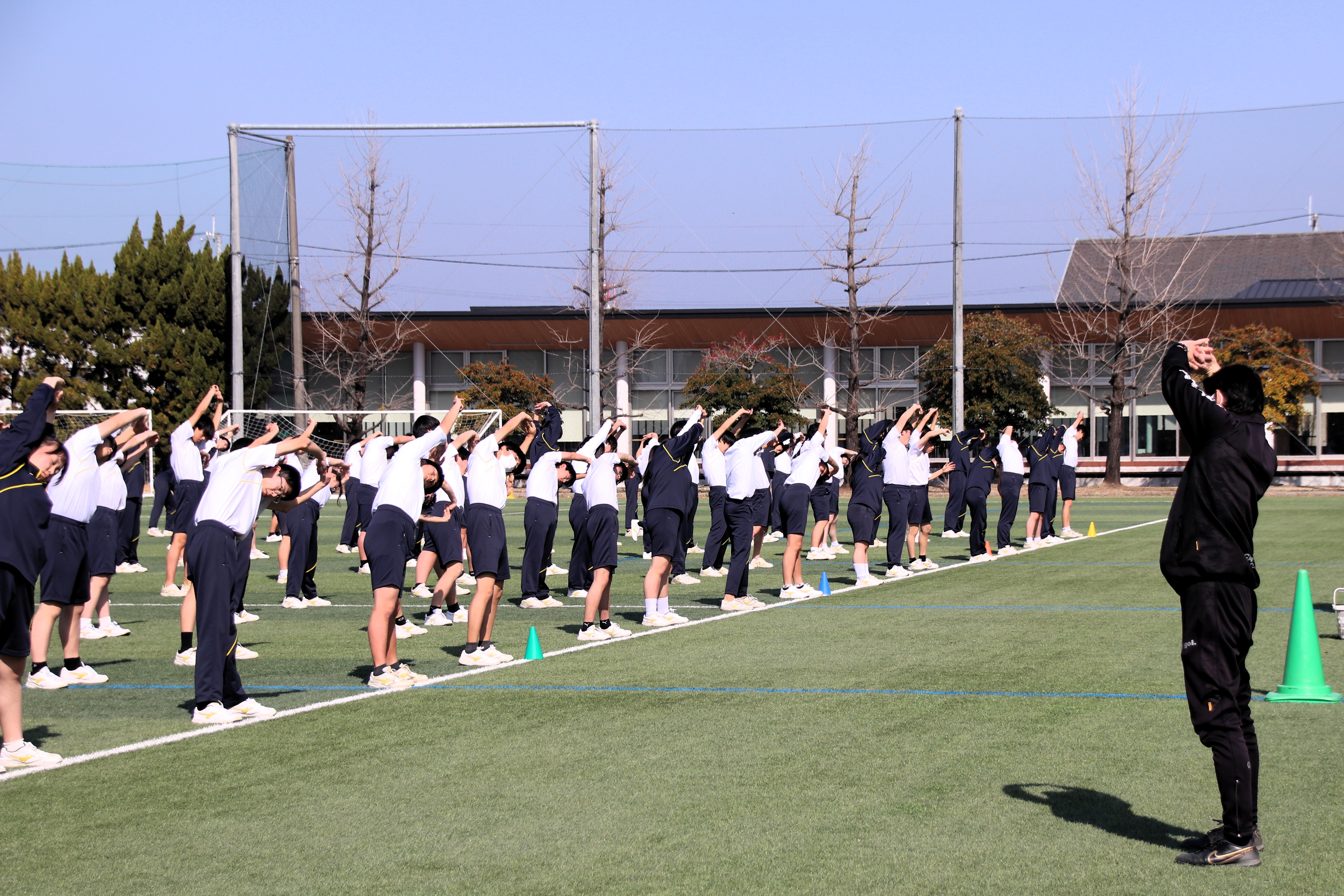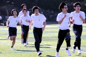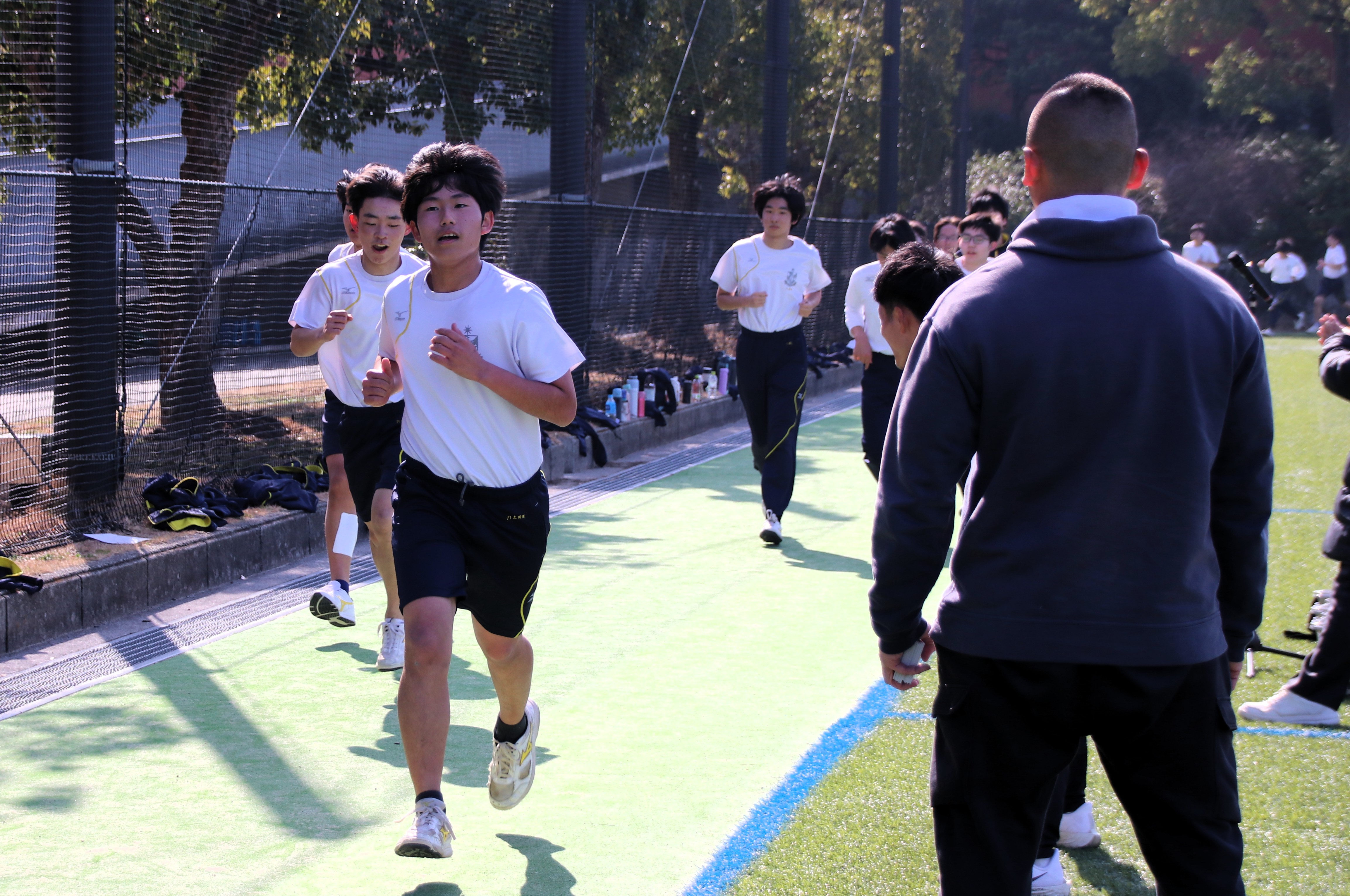 三寒四温という言葉があります。寒い日が三日ほど日続いた後に暖かい日が四日ほど続き、それが繰り返される気象現象のことをいいます。本来は冬の季語ですが、そこには寒暖を繰り返しながら春に近づいていくというという意味も含まれているように思います。そんな春の訪れを予感させる快晴の日に、71期生にとっての中学部最後のマラソン大会が行われました。生徒は冬に育つ。苦しくてもあきらめず、それぞれのペースで自分のゴールを目指してがんばる姿には、この三年間の成長が感じられ、また、その横顔は頼もしくもありました。(中3学年部長の一色大輔先生も一緒に走っています。)