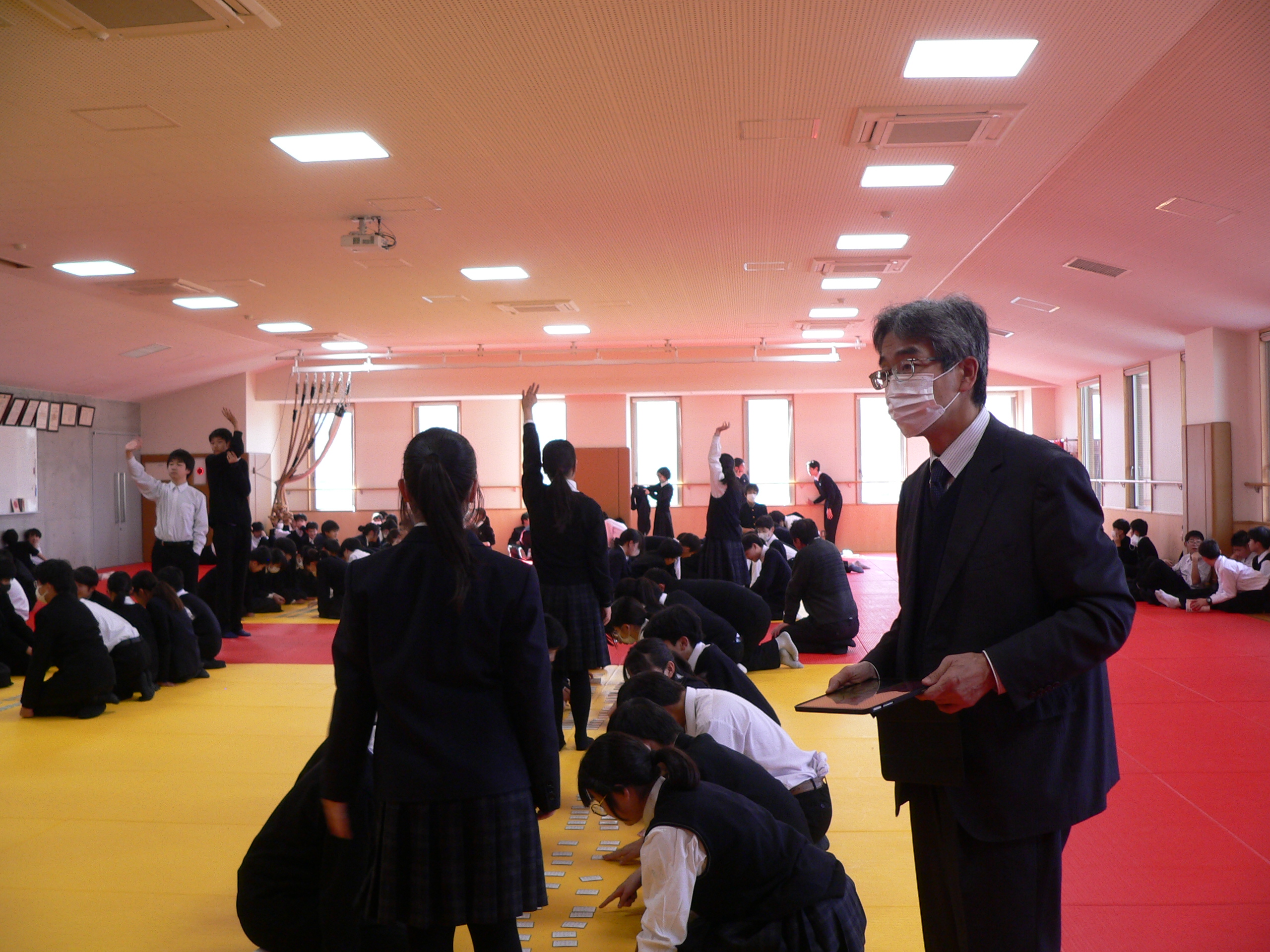 昨日の午後、中1の「百人一首かるた大会」を