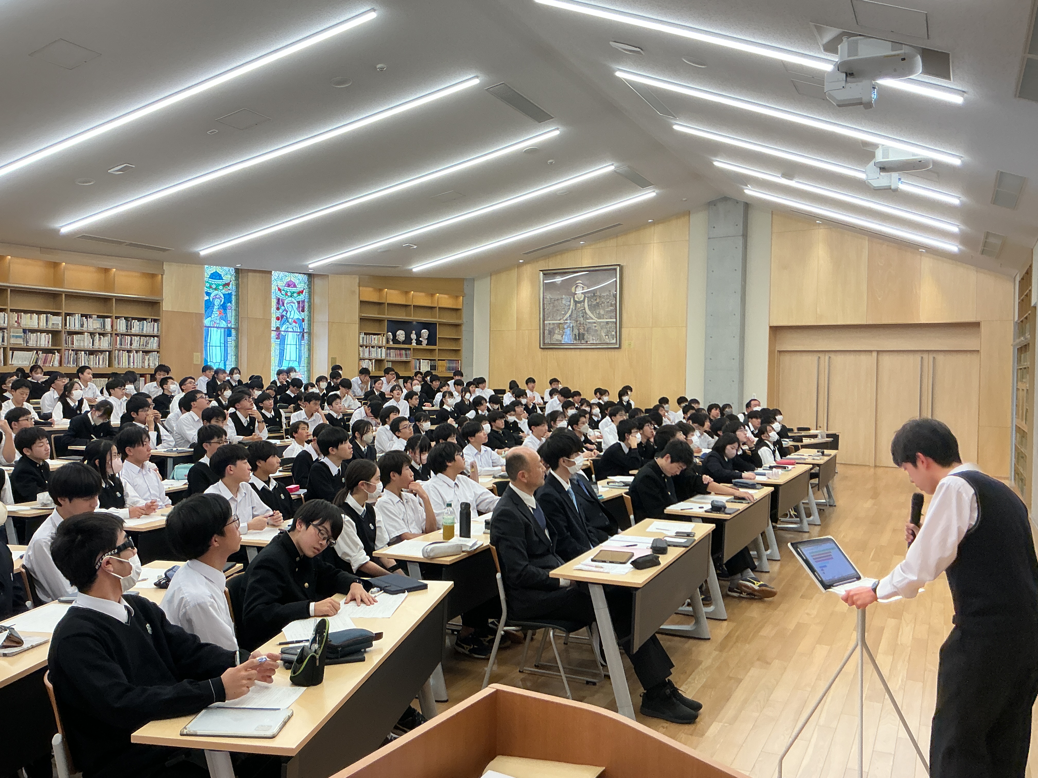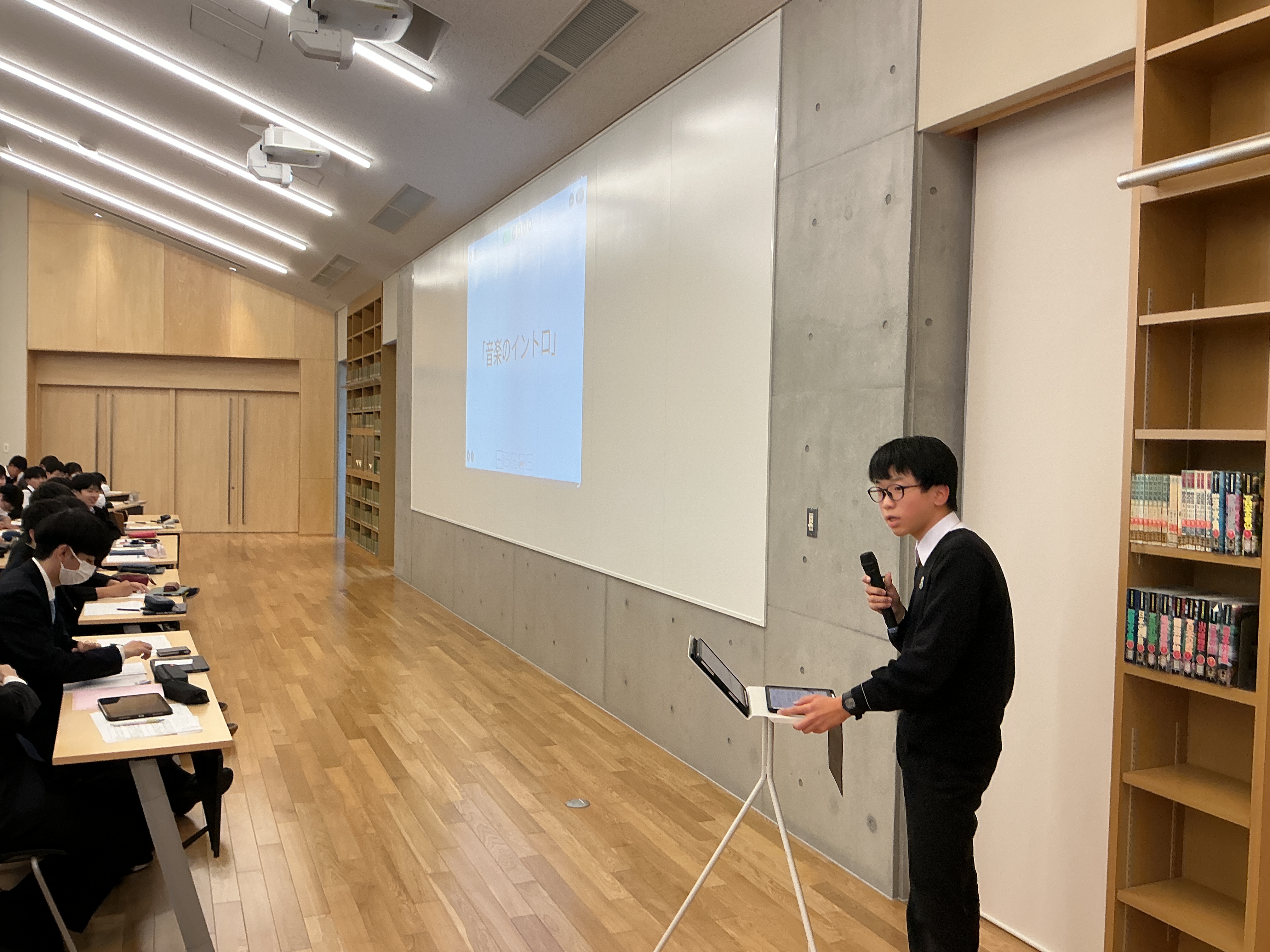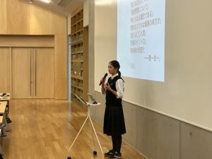 また、前半戦と後半戦の間を利用して、昨年12月の道明中学訪問に参加した生徒が報告を行いました。少しでも興味を持った人は、次の機会での参加を考えてみてください。