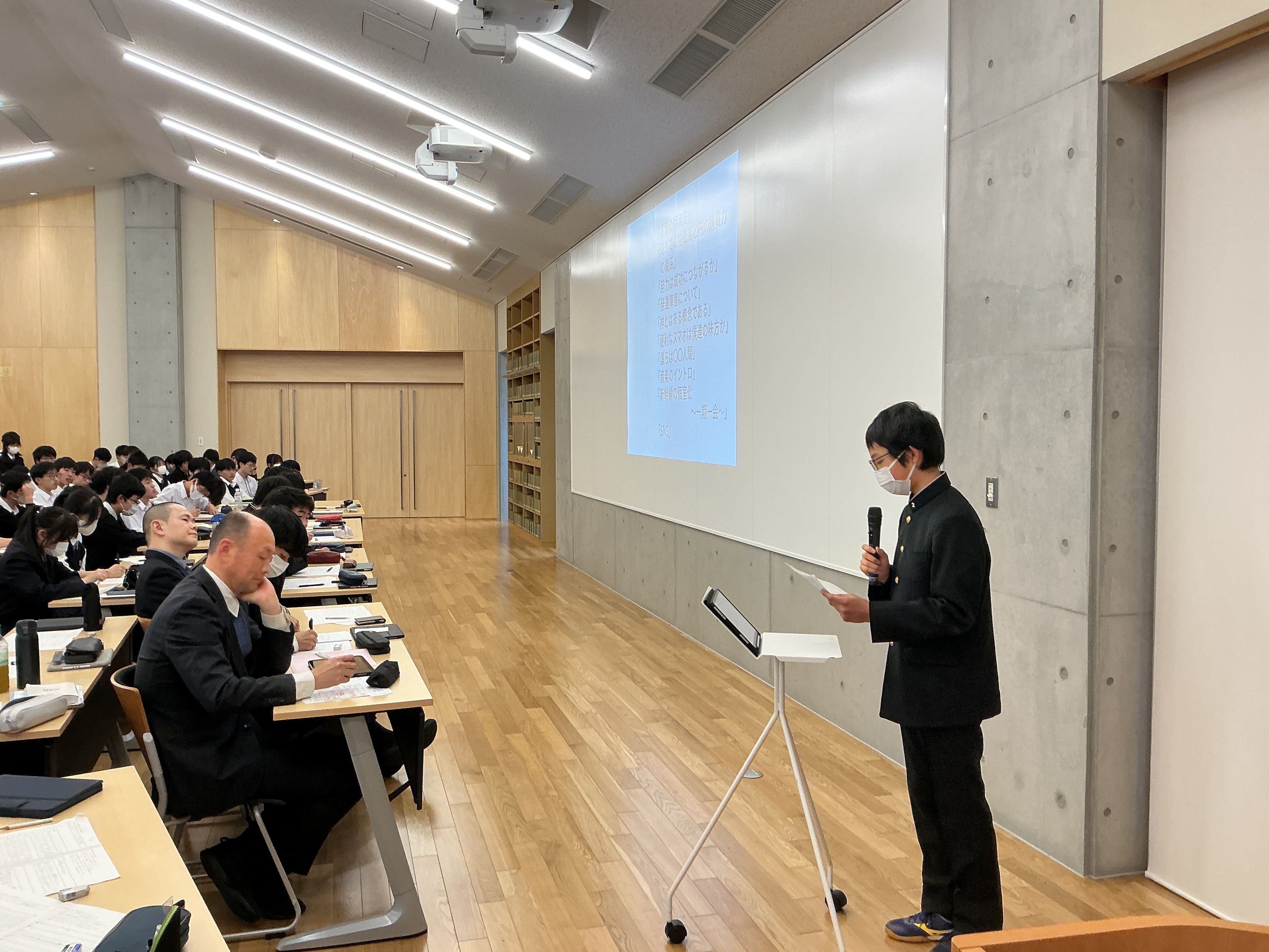 2月26日(木)の6・7限に、文化会館において中2生の弁論大会の決勝戦が行われました。