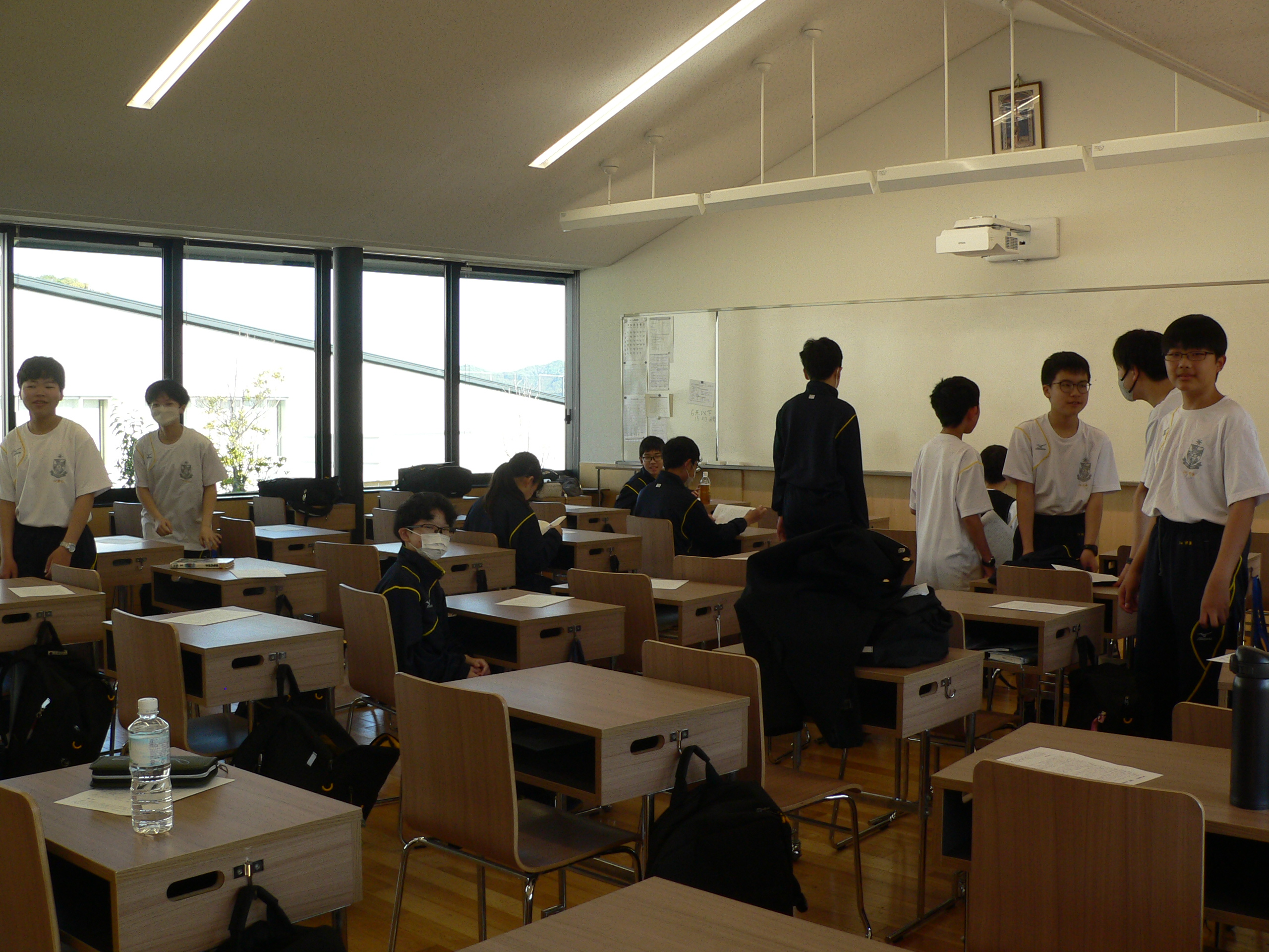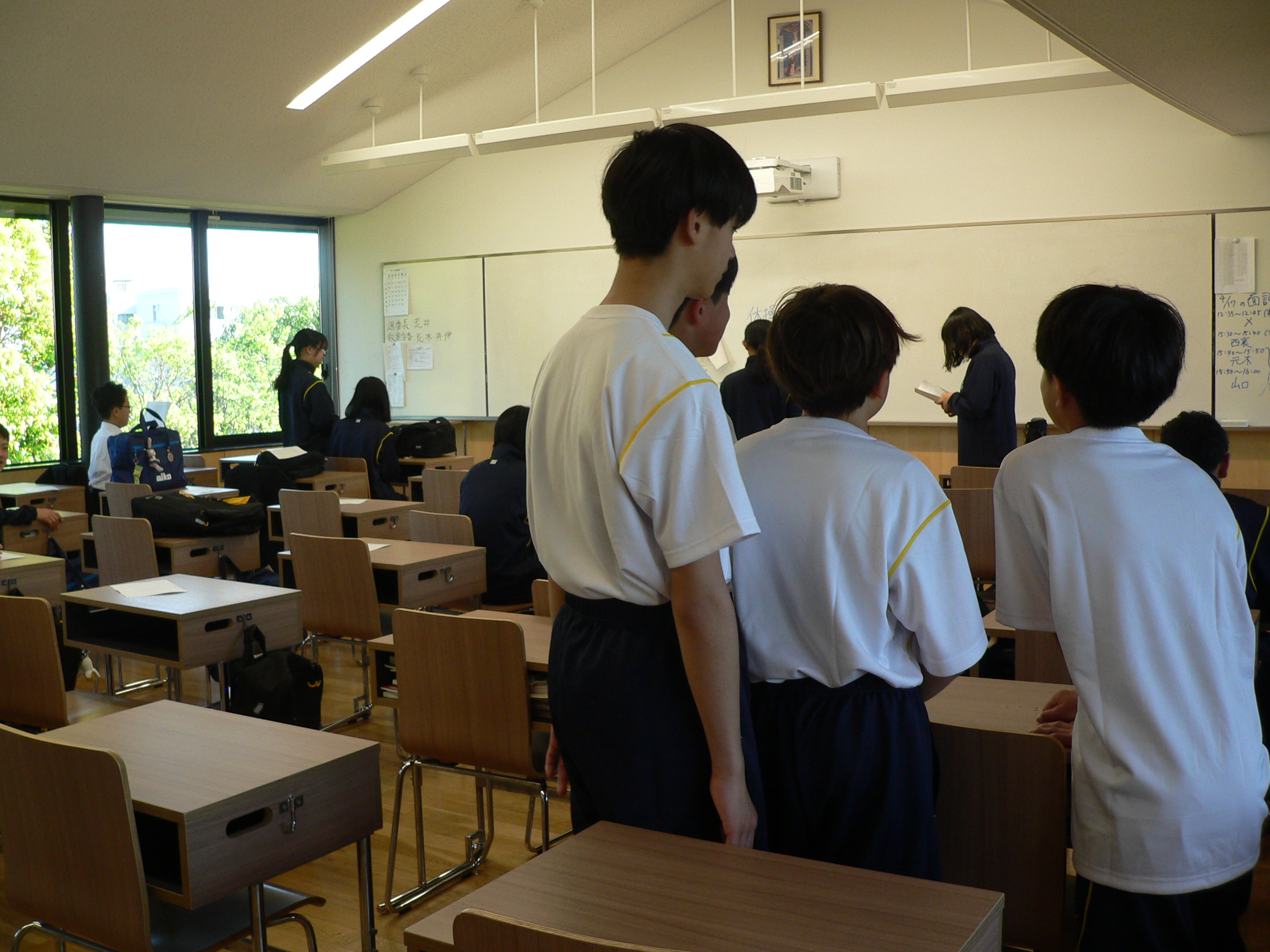 始業前の中学棟の教室を訪問しました。