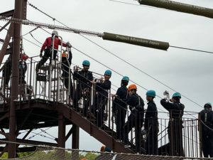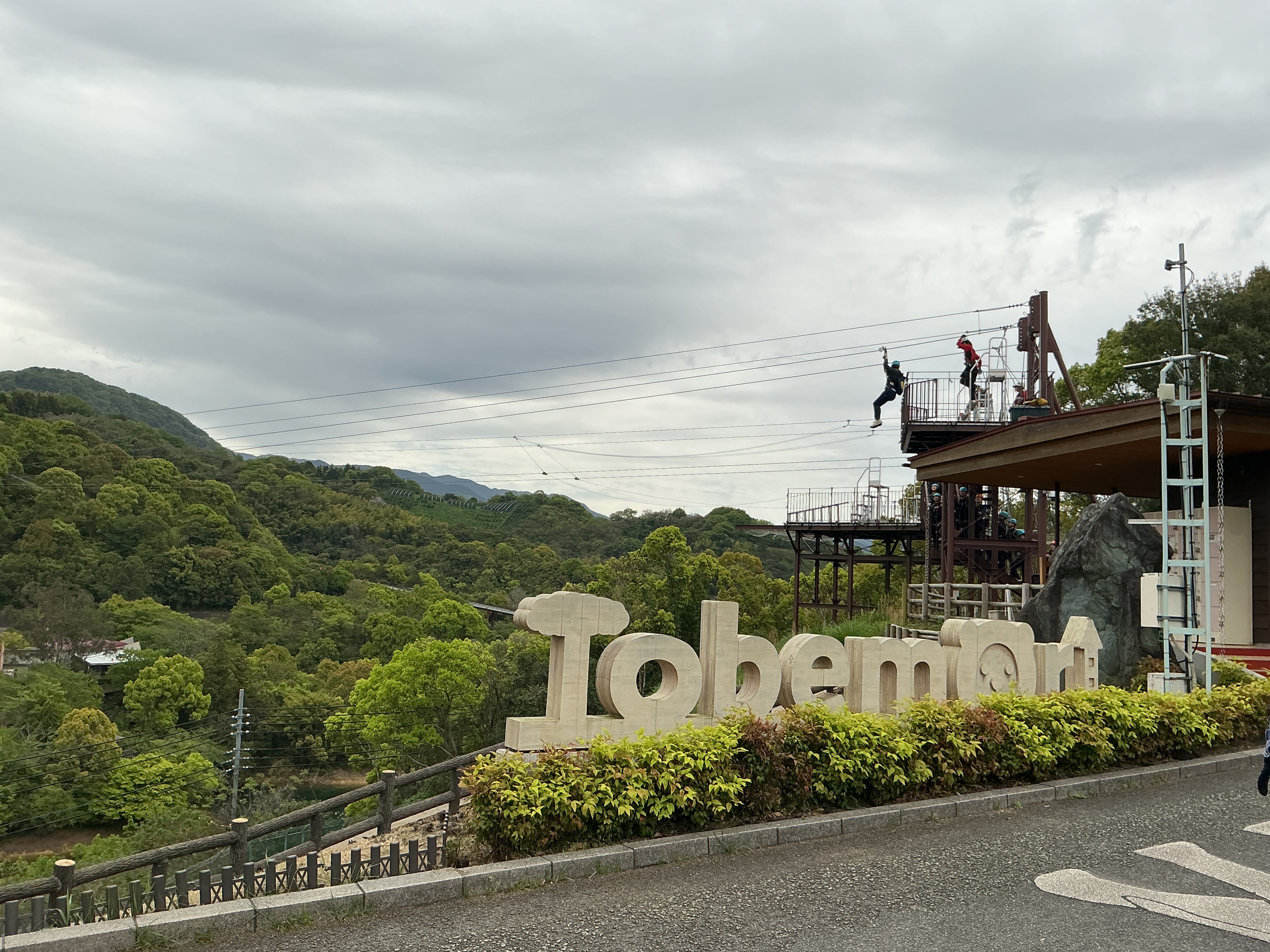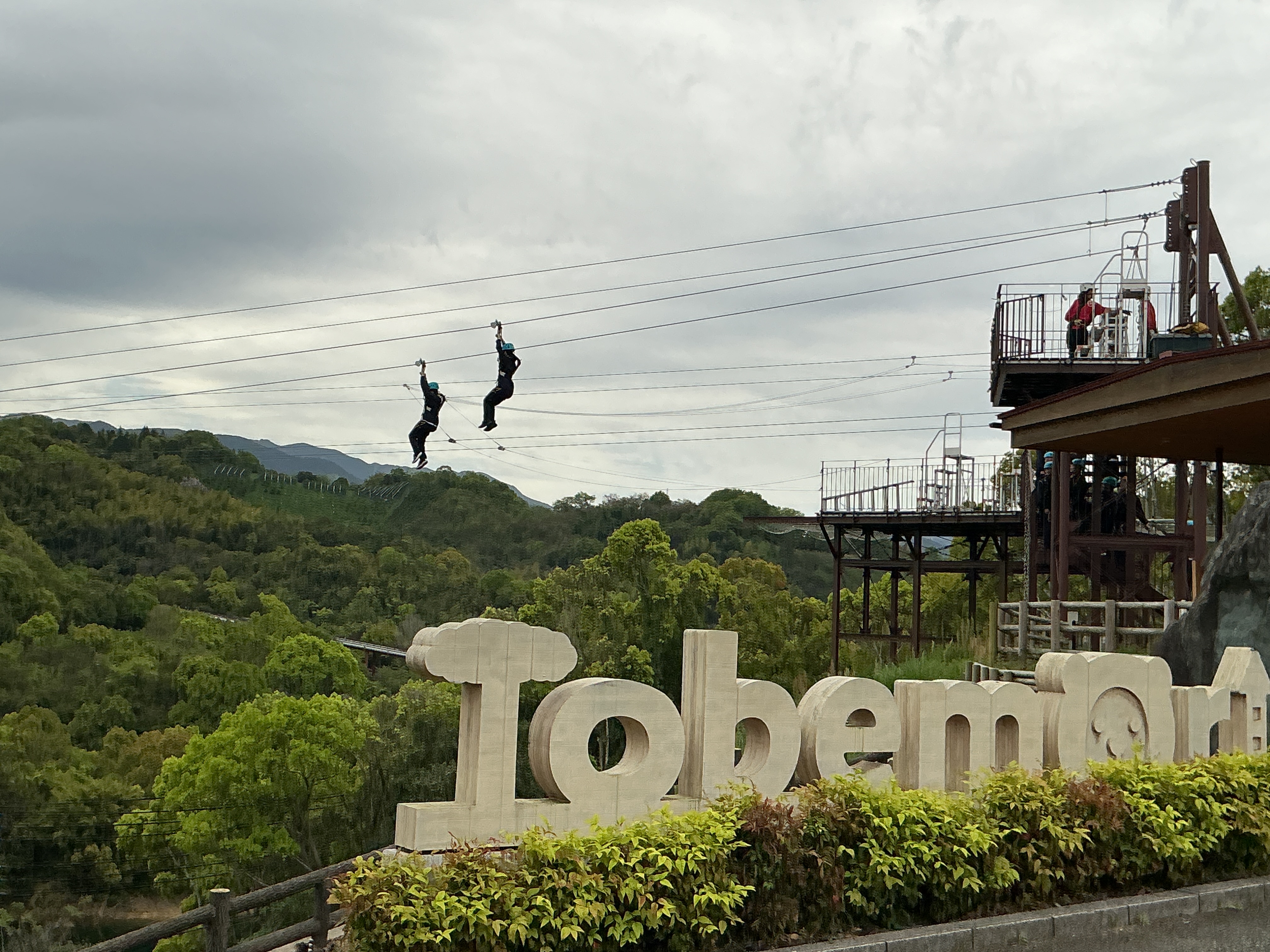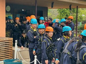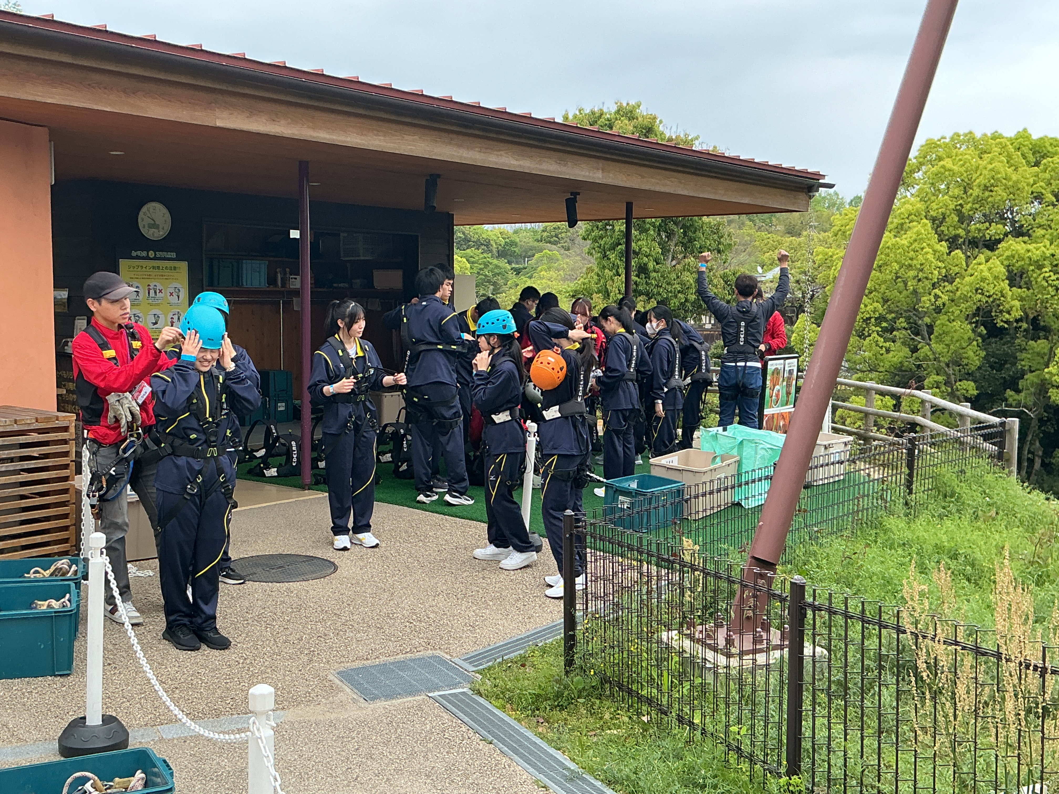 希望者はジップラインを体験しました。