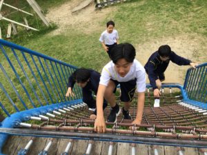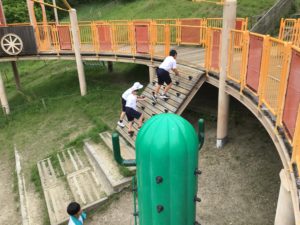 食事の後は自由時間。遊具などを使って、思いっきり身体を動かしていました。