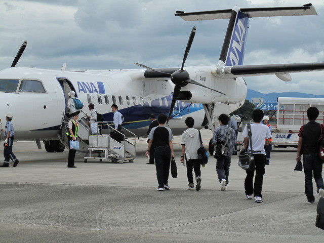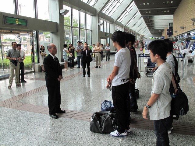 松山空港にて,オーストラリア語学研修の出発式。校長先生から激励を受け
