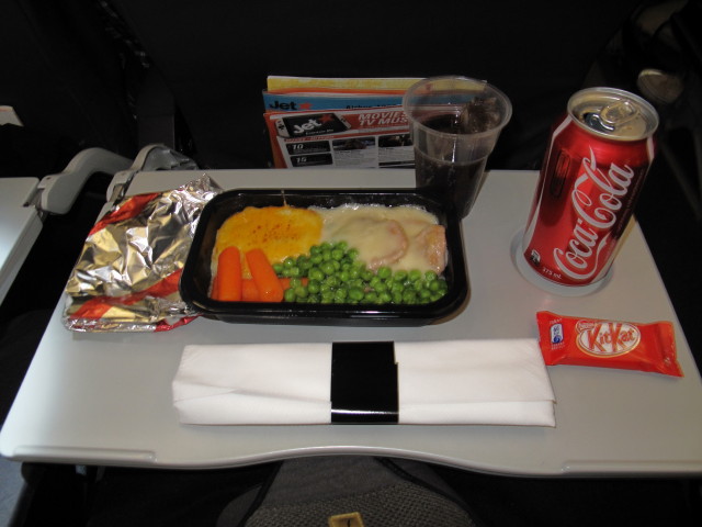 機内食(夕食)は,チキンのクリームソース煮込みとマッシュポテトでした