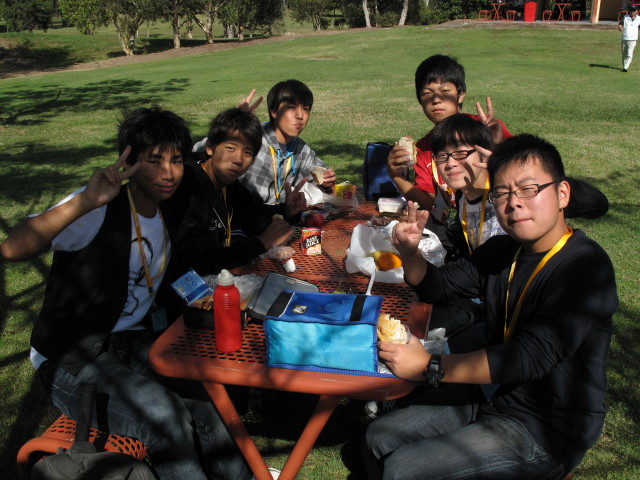 ランチの時間。各自ホストファミリーが持たせてくれたお弁当を食べました。どのお弁当もなかなかのボリュームで,みんなおいしそうに食べていました。