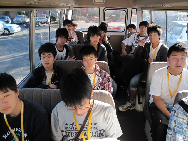 4日目は土曜日。この日は朝から一日アクティビティーということで,ブリスベン郊外のドリームワールドに出かけました。スクールバスに乗って,みんなとってもご機嫌です。