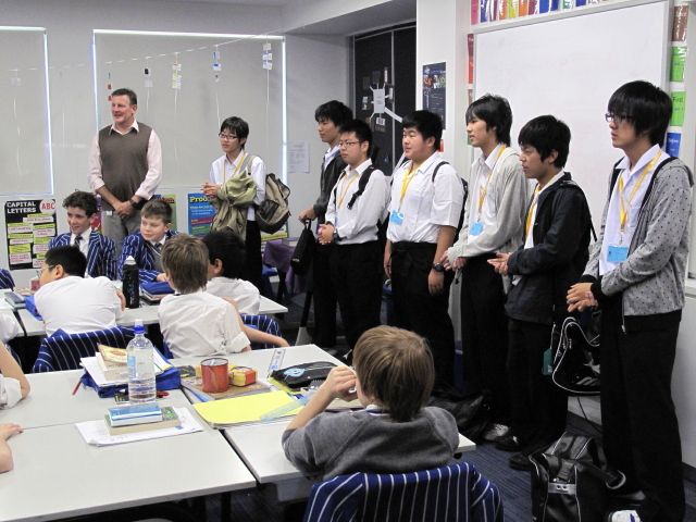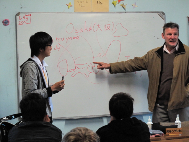 今日は,午前中の前半は英語の授業,後半はNICの高校部へ学校訪問しました。訪問クラスは,日本でいう高校1年生で第2外国語に日本語を選択しているクラスです。まずは,愛光の紹介と松山の紹介を英語でしました。