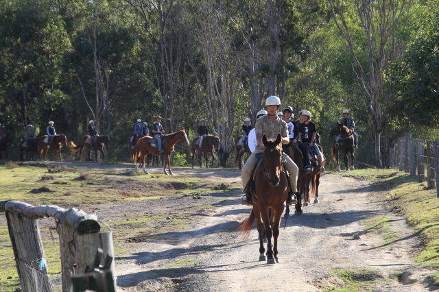 準備ができたら,農場の周囲の林の中を約1時間半馬に乗ってお散歩です。ちなみに馬は自分で操ります。はじめはおっかなびっくりでしたが,次第にちゃんと出来るようになりました。御覧の通り,約20頭の馬の行列は迫力満点です。