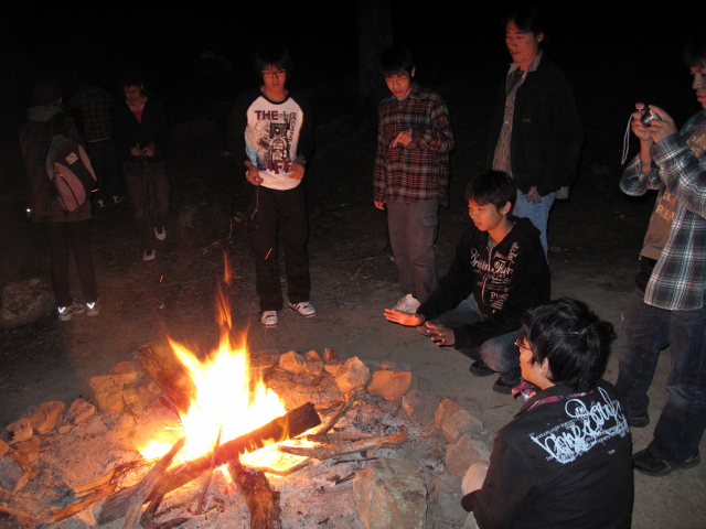 夕食の後は,キャンプファイアーを楽しみました。火を囲んでいろいろおしゃべりをしたり,満天の星空を見たりしました。周囲は真っ暗なので星の見え方は半端じゃありません。天の川の星々がまるで煙のように夜空に広がっています。南十字星もハッキリ確認できました。