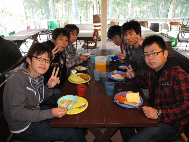 ファーム体験2日目。まずは一日の元気の素,朝食です。昨夜はゆっくりと休めた様子で,全員朝からとってもご機嫌な様子でした。