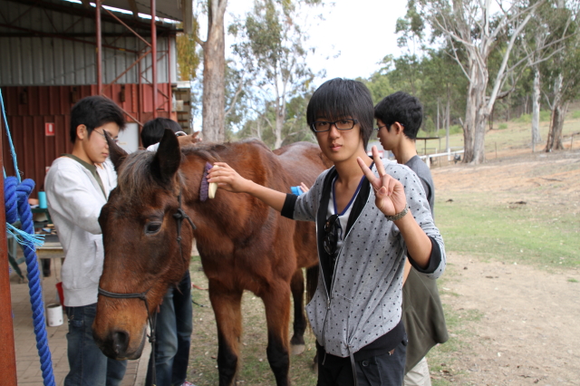 馬の手入れの仕方も詳しく習いました。ブラッシングや蹄(ひづめ)の掃除など,今までしたこともない体験を全員が体験しました。生徒達が本当に楽しそうに,また真剣に取り組んでいたのが印象的です。