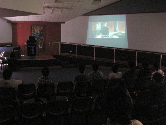 ランチの後,ホールに入って映画「スターウォーズ」を鑑賞しました。もちろん英語版です。日本語のスーパーなどは一切出てきません。「結構イケた!」という生徒あり,「早過ぎてついていくのがやっと」という生徒あり・・・。
