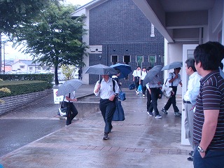 松山は、朝から雨が降っています。教員の挨拶が続いています。