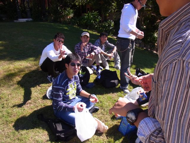 お昼休み。ホームステイ先から持たせてもらったお弁当を食べます。![]()