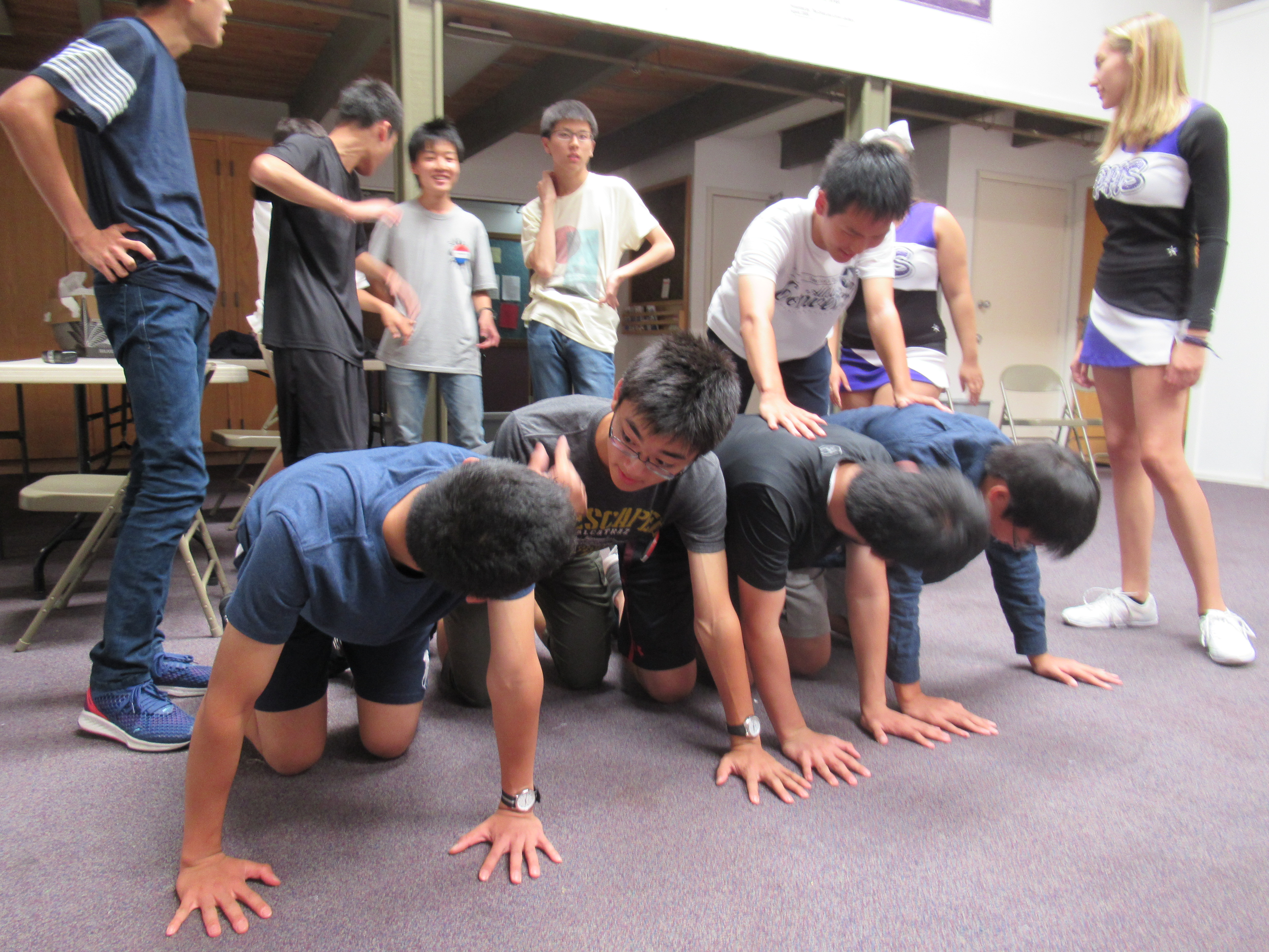 こちらの班はCheerleadingの体験をしました。(この取り組みが成功したかどうかはご想像にお任せします!)