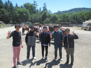 さて、2日目はお出かけして、乗馬体験です。バスでの移動の疲れを見せる間もなく、早速レッスンです。