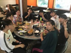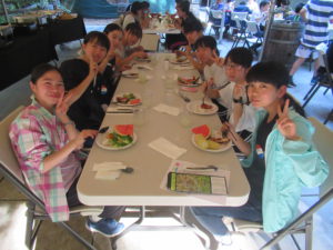 サラダバーやフルーツ、ドリンクバーもあり、生徒たちは大喜び!